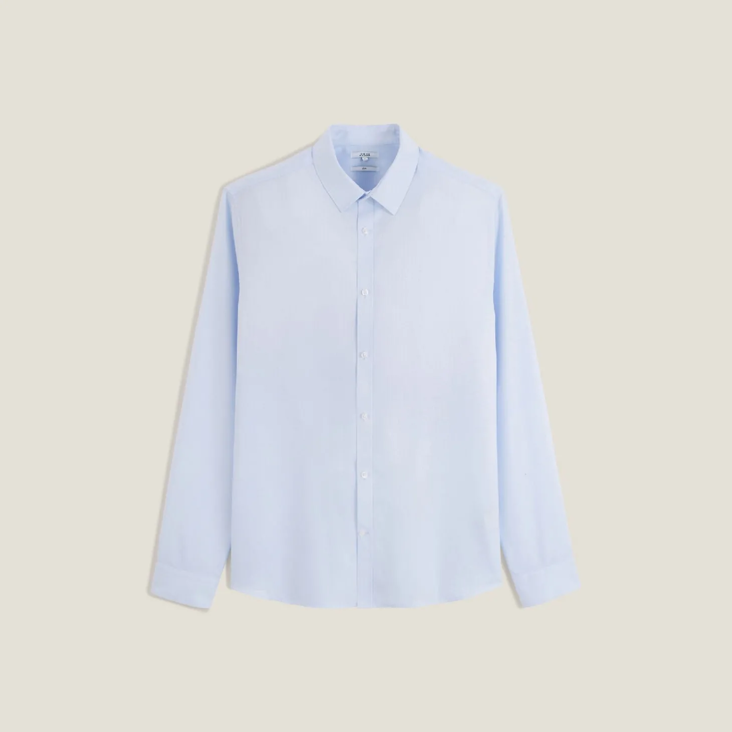 Dit effen hemd is uitgevoerd in katoen met een was die soepelheid en comfort biedt. Hij is ideaal voor een relaxte look.