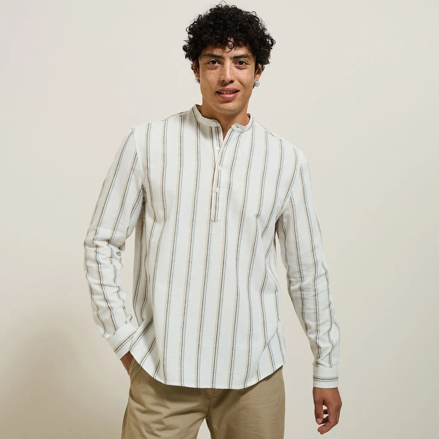 Dit gestreepte overhemd biedt een relaxte, casual look onder alle omstandigheden. Kan gedragen worden op jeans, of een chinobroek.
