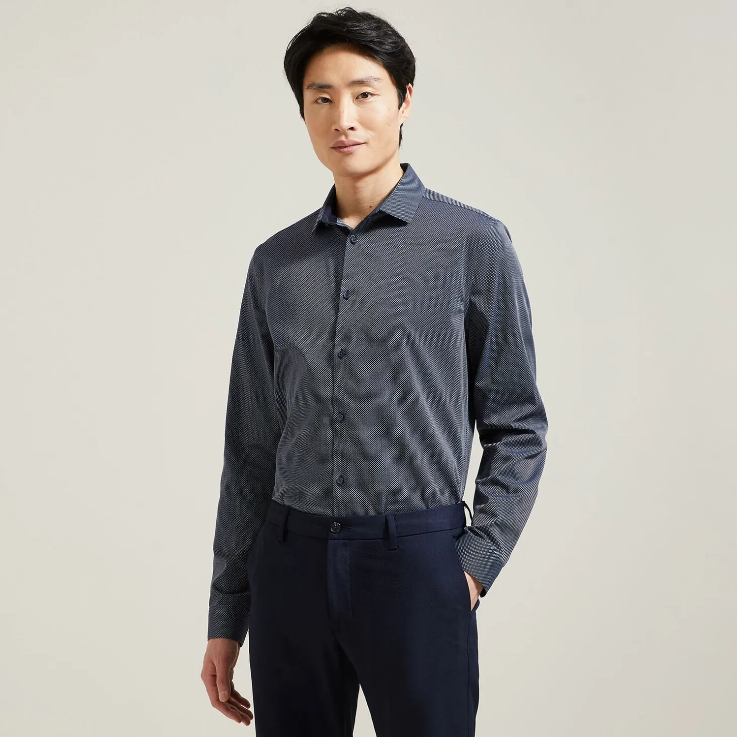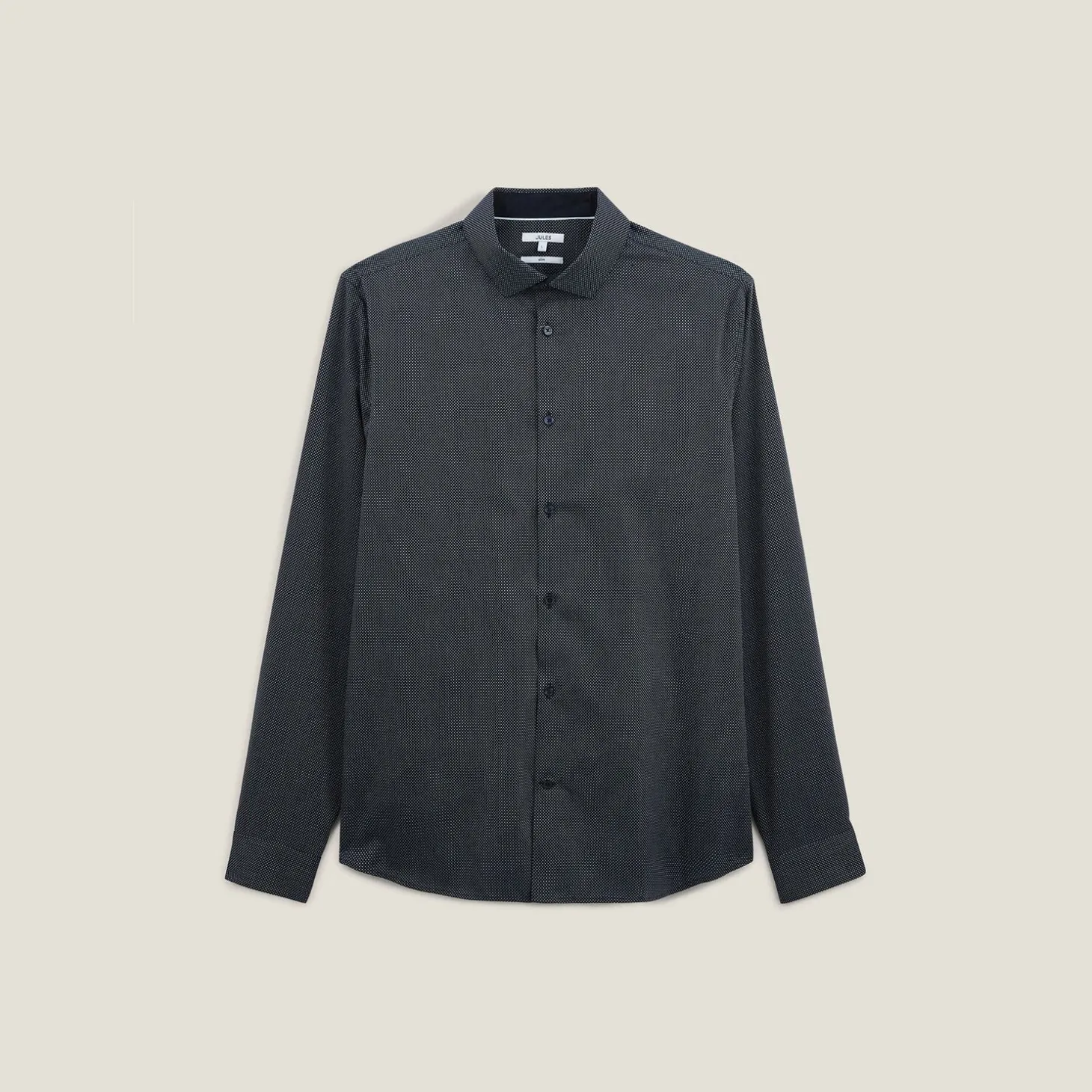 Om je hemden na het wassen niet te hoeven strijken, hebben we een stof ontwikkeld voorzien van een kreukvrije behandeling die strijken overbodig maakt.