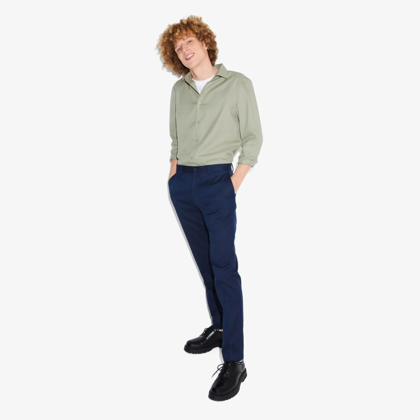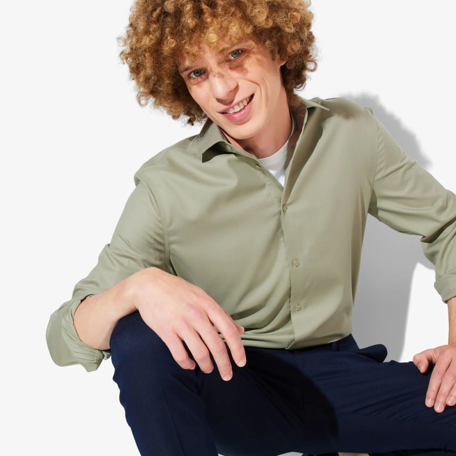 Om je hemden na het wassen niet te hoeven strijken, hebben we een stof ontwikkeld voorzien van een kreukvrije behandeling die strijken overbodig maakt.Alexis meet 1m90 en draagt maat L.