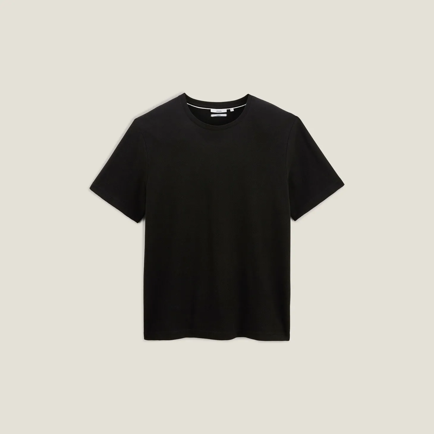 Dit T-shirt in een katoenen reliëfstof met elastaan mag in geen enkele dressing ontbreken en matcht met alles.