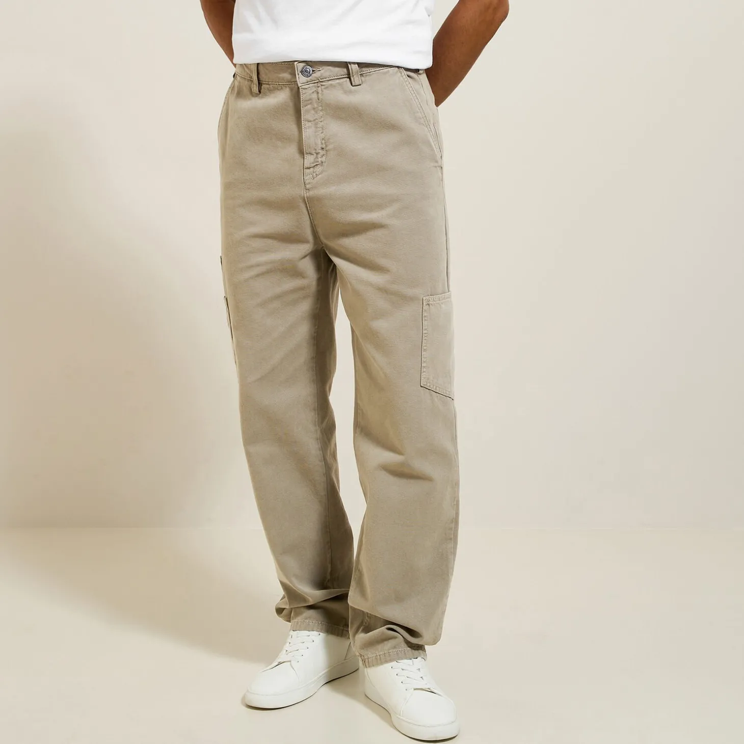 Deze brede broek in katoen is een must have in een mannengarderobe. Met zijn wijde snit en vele zakken, waaronder een cargozijzak, biedt deze broek een relaxte en praktische look.