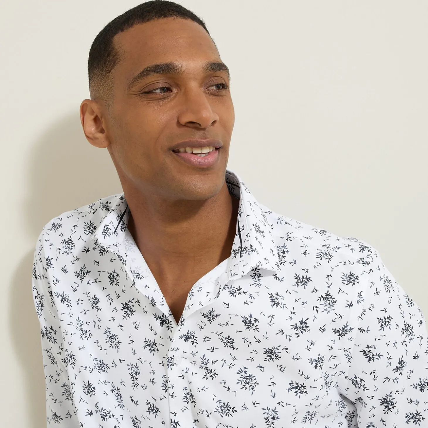 Geef een florale twist aan je garderobe met dit slim hemd met bloemenprint. Dit hemd, uitgevoerd in katoen, biedt een geklede en trendy look