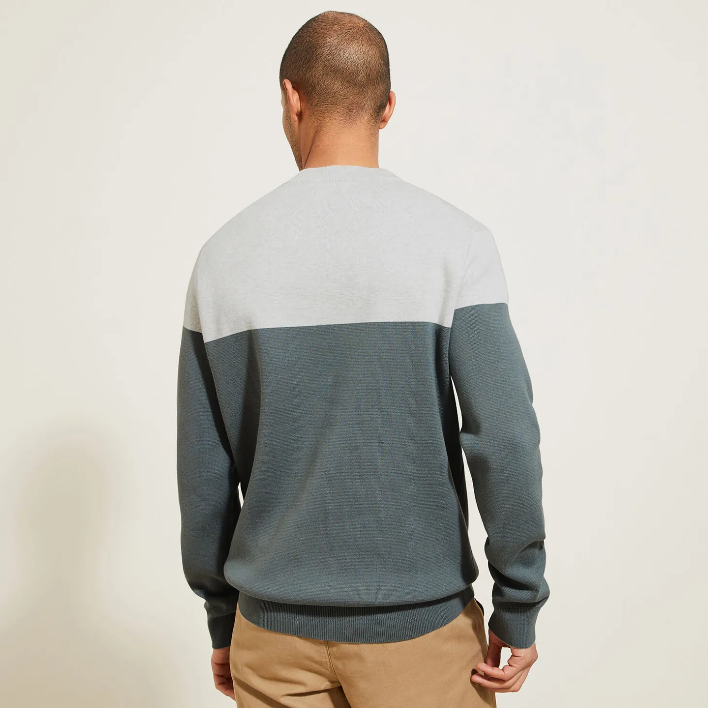 Deze colorblock trui met ronde hals is tijdloos, en past bij elke stijl!Moderne snit, niet te nauwsluitende noch te wijd…