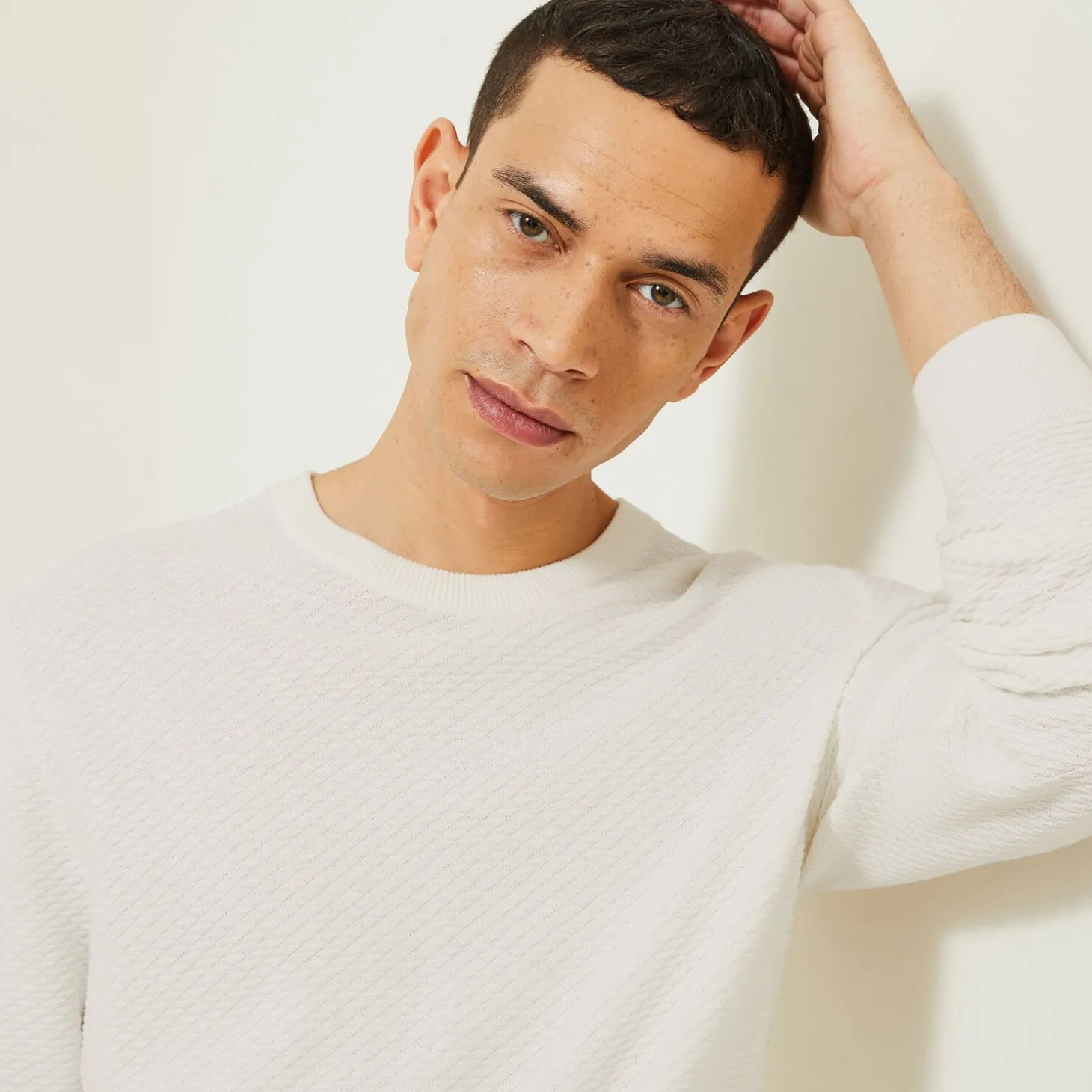 Deze trui met ronde hals en structuurpatroon geeft al uw looks een vleugje fantasie.