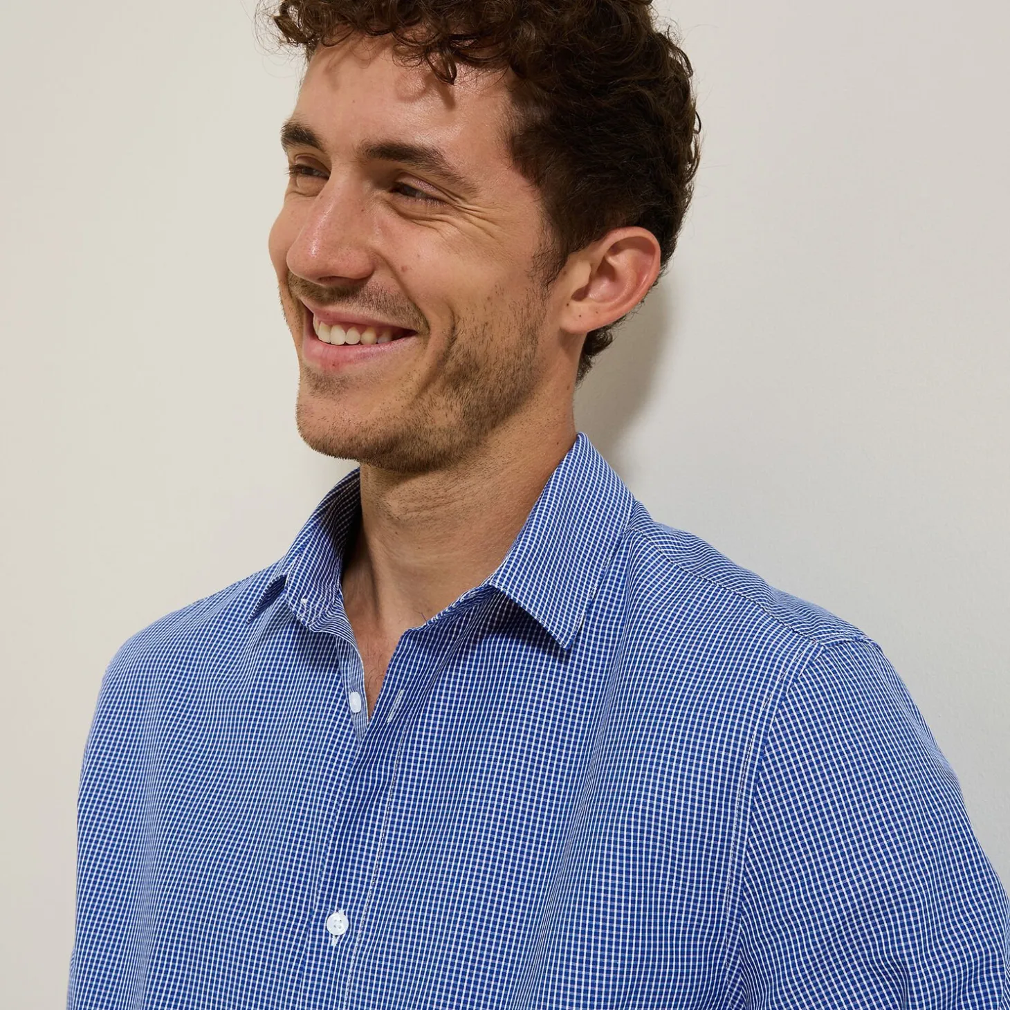Dit katoenen hemd met kleine ruitjes is een must have in een mannendressing! Hij past perfect op een chinobroek of een jeans.