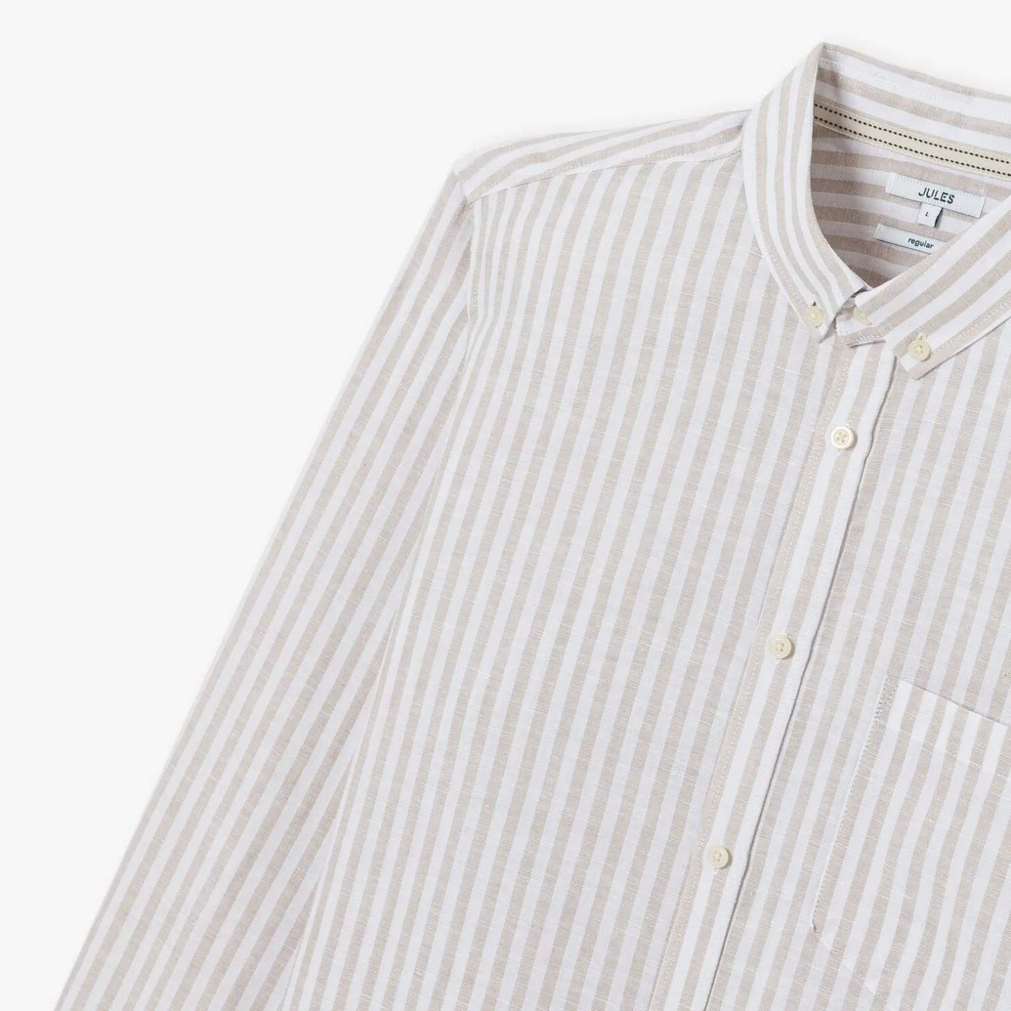 Dit gestreept, thermoregulerend hemd in katoen en linnen voelt licht en zacht aan.