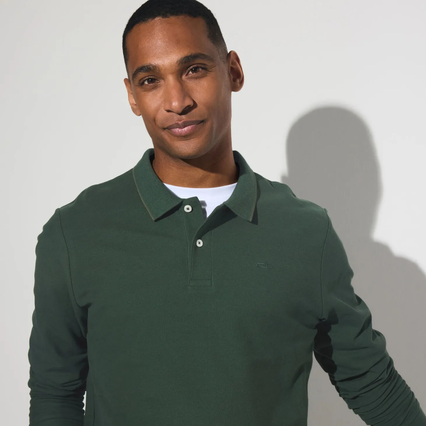 Met zijn subtiele geborduurde logo op de borst, is deze effen piqué polo met lange mouwen een must-have in de herengarderobe.