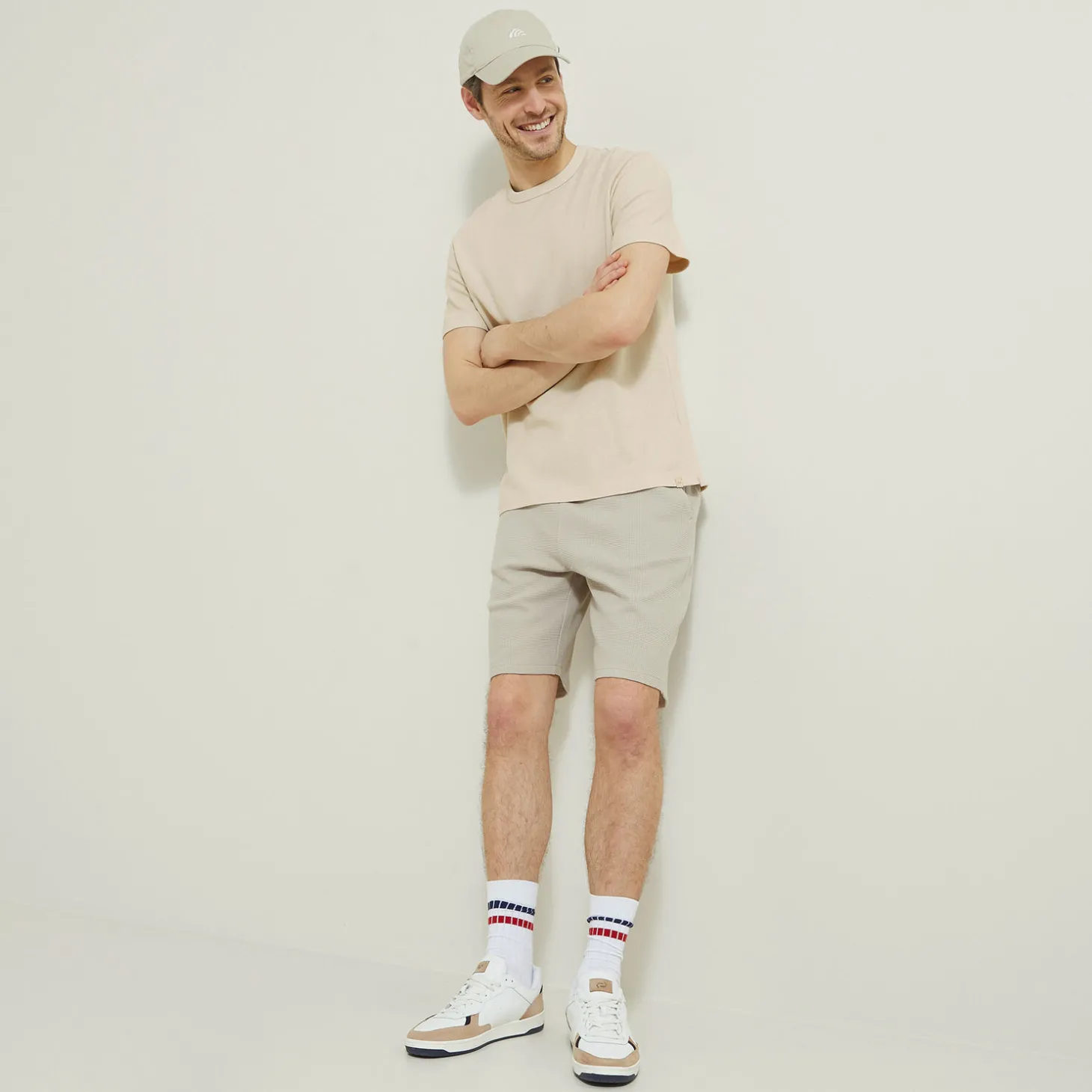 Dit T-shirt met korte mouwen, uitgevoerd in een zeer kwalitatief wafelstof, is een essentieel item in een mannendressing. Maak je look compleet met bijpassende bermuda of broek.