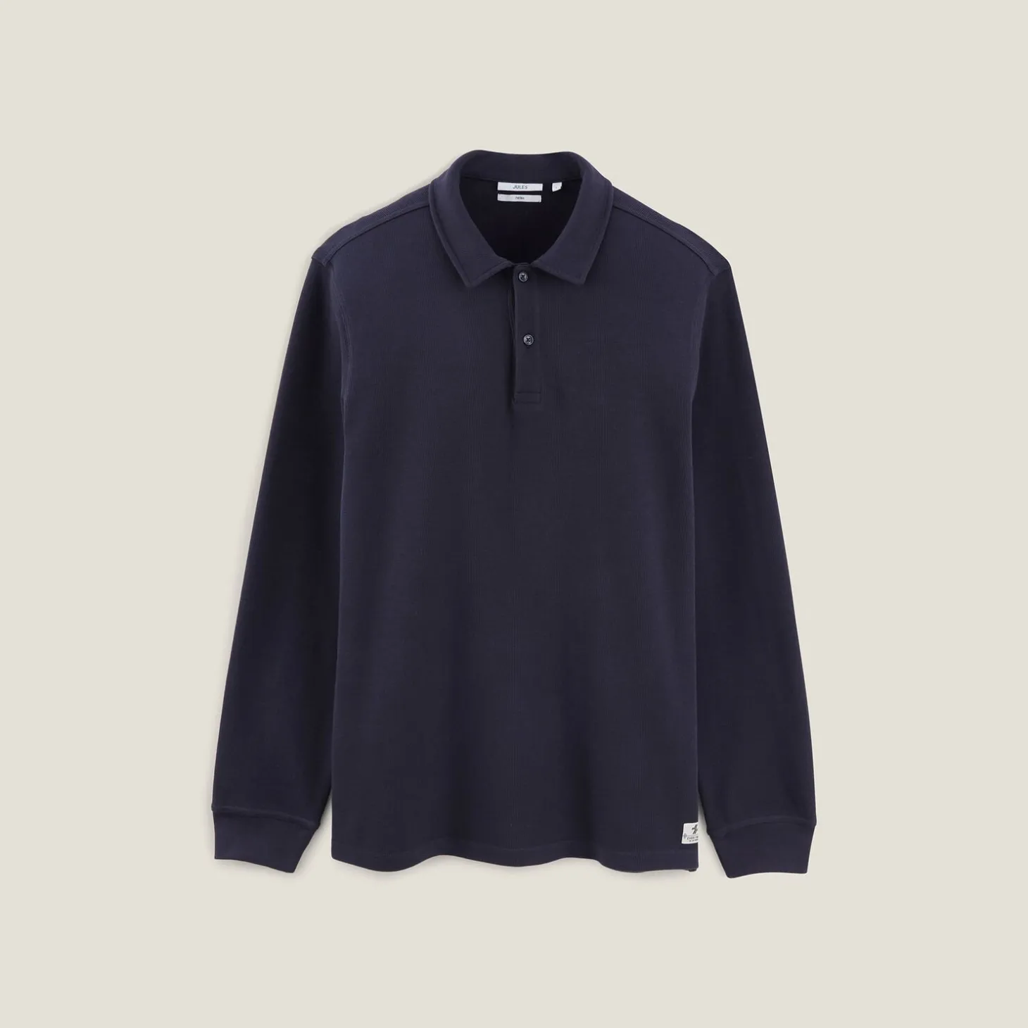 Deze polo met lange mouwen is ideaal voor een ontspannen en elegante look. Combineer deze polo met een chinobroek en witte sneakers voor een trendy look. Voor een meer ontspannen outfit, draag hem over een wit T-shirt.