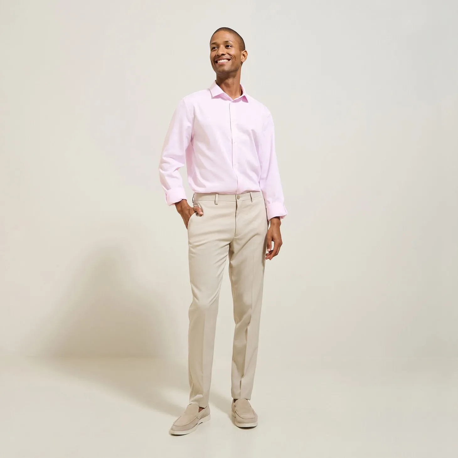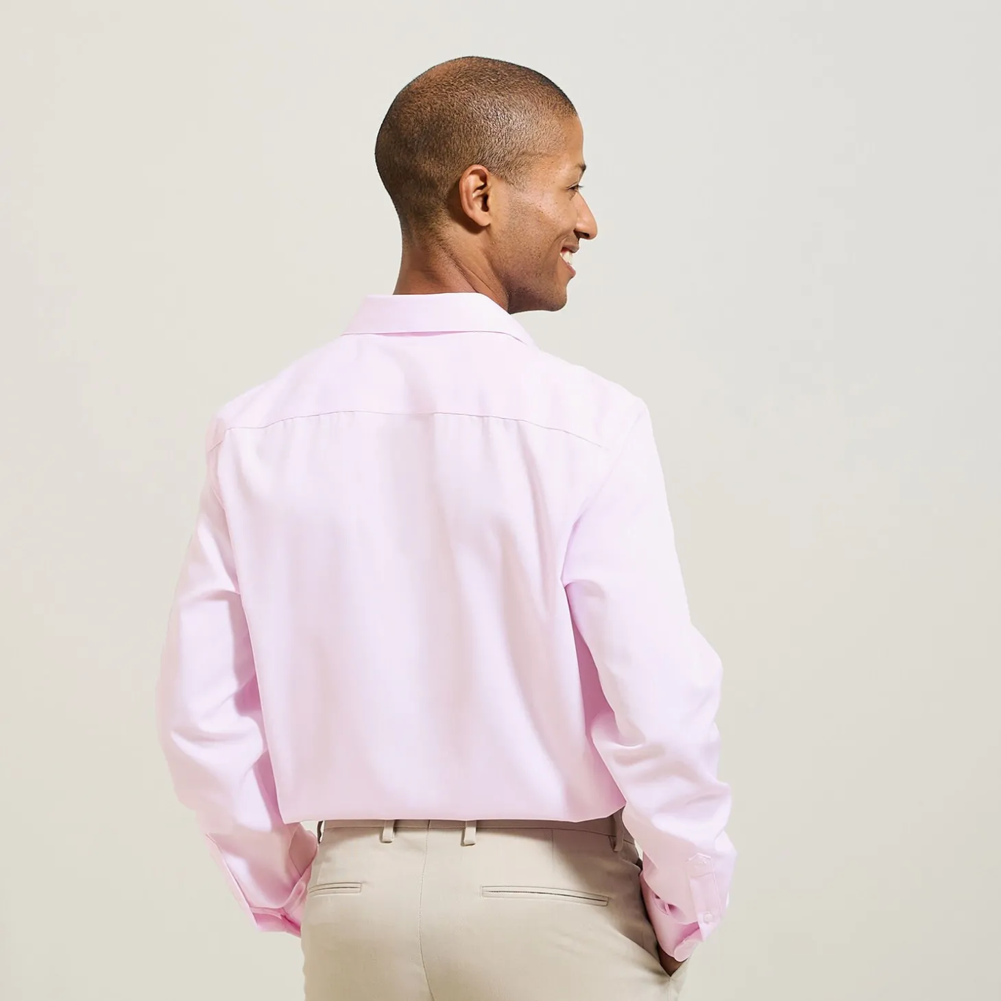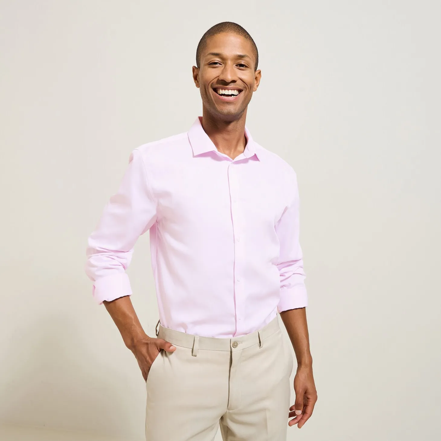 Om je hemden na het wassen niet te hoeven strijken, hebben we een stof ontwikkeld voorzien van een kreukvrije behandeling die strijken overbodig maakt.Ismael meet 1m87 en draagt maat L.