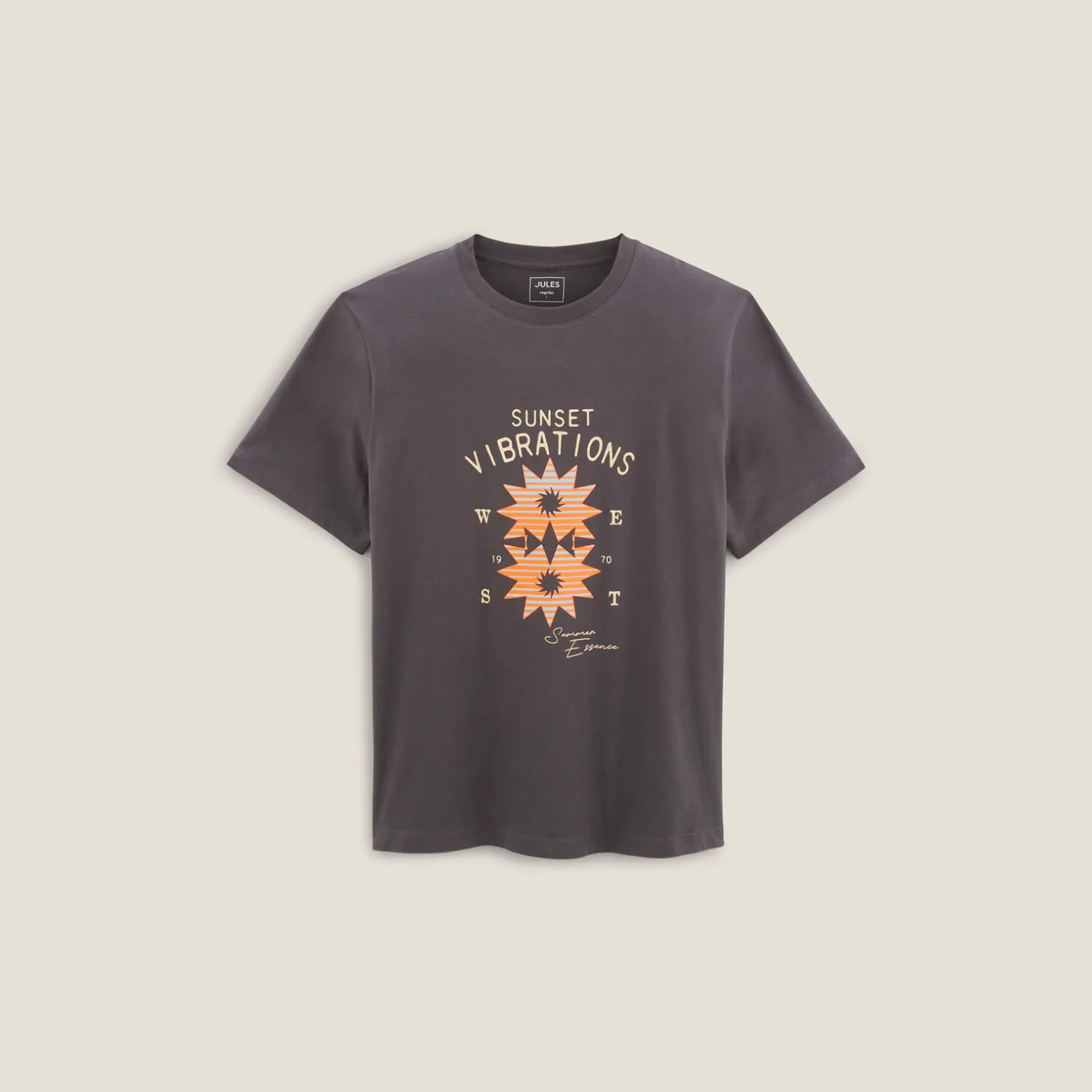 Dit t-shirt, met korte mouwen en fantasieprint op de borst, mag niet ontbreken in de herengarderobe.