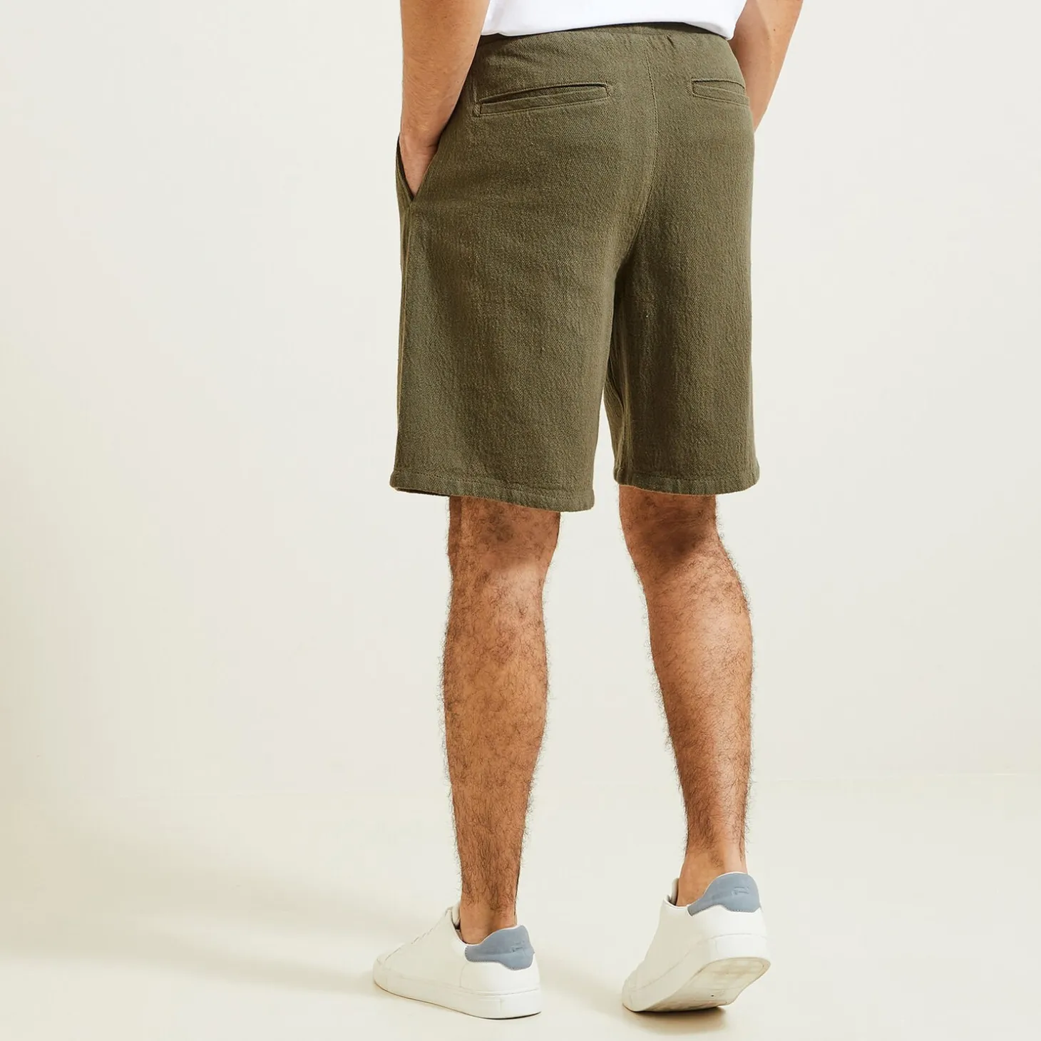 Deze bermuda in een lichte en goed zittende textuurstof is een topper van de zomerdressing.