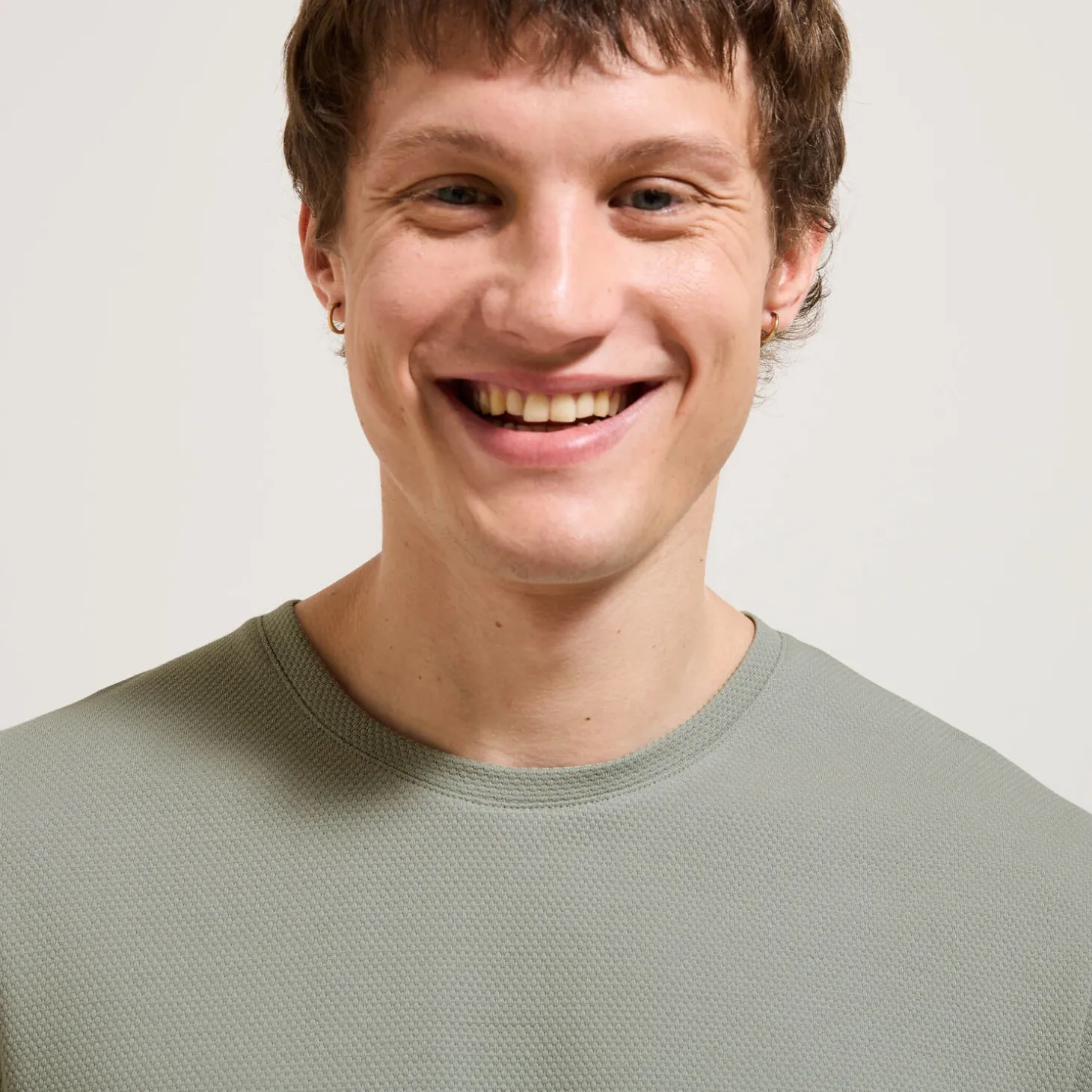 Dit T-shirt in een katoenen reliëfstof met elastaan mag in geen enkele dressing ontbreken en matcht met alles.
