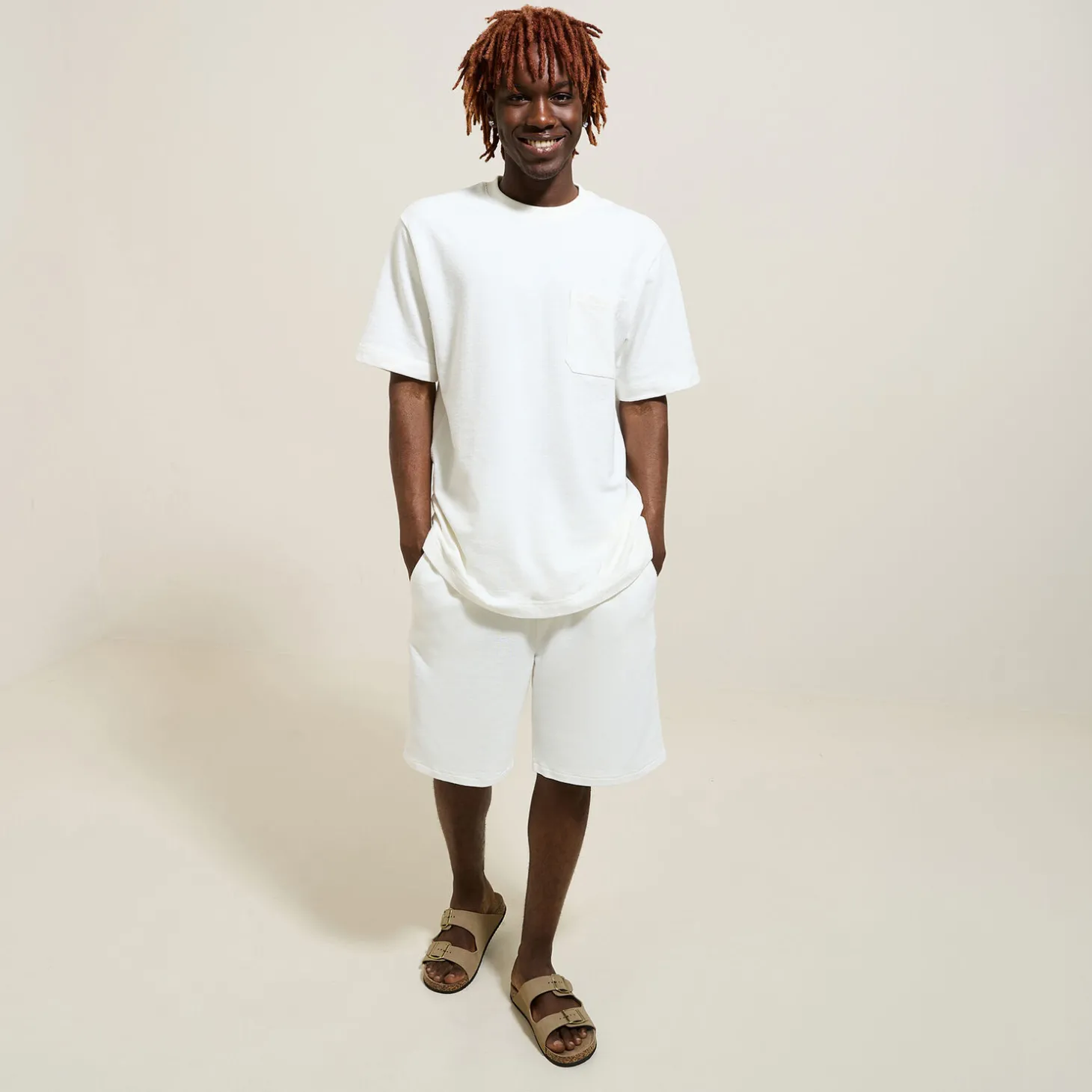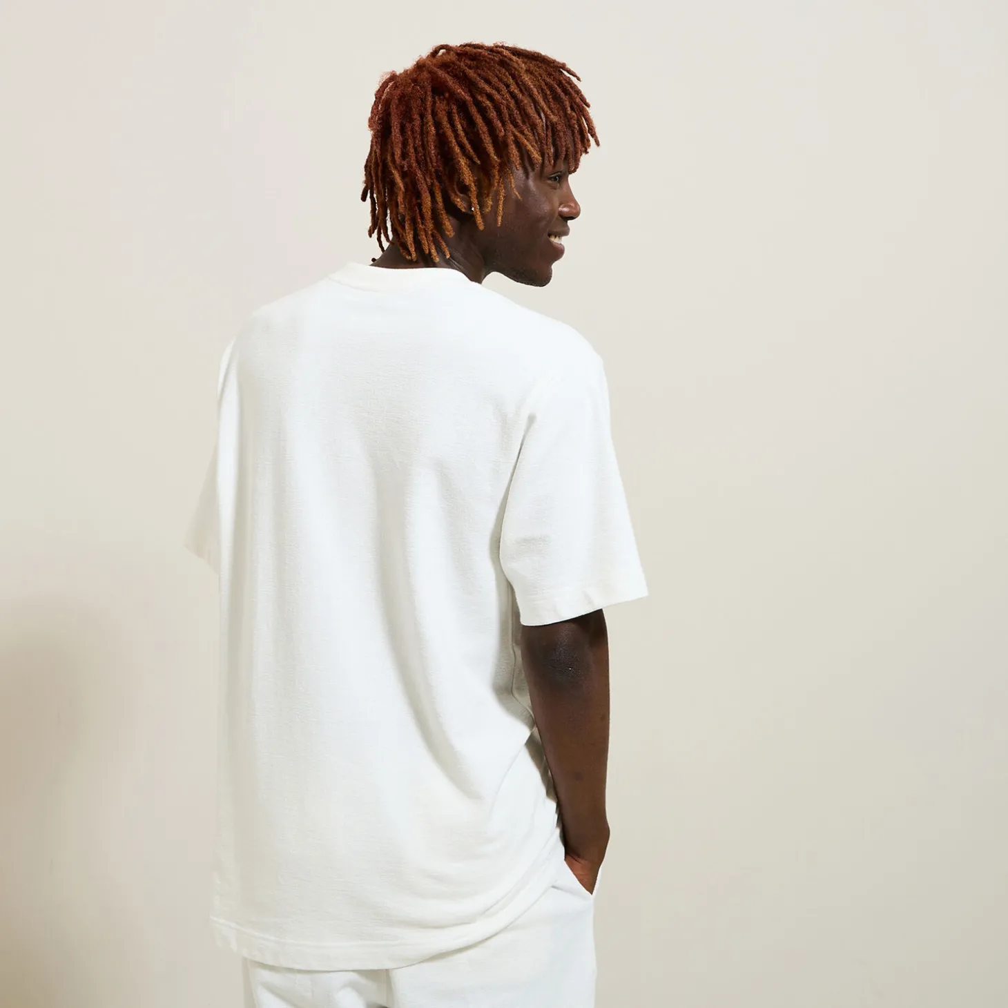 Dit T-shirt in crêpe, een dikke stof, blijkt al snel een must have in je dressing.Relaxte snitRonde hals1 opgestikte bo…