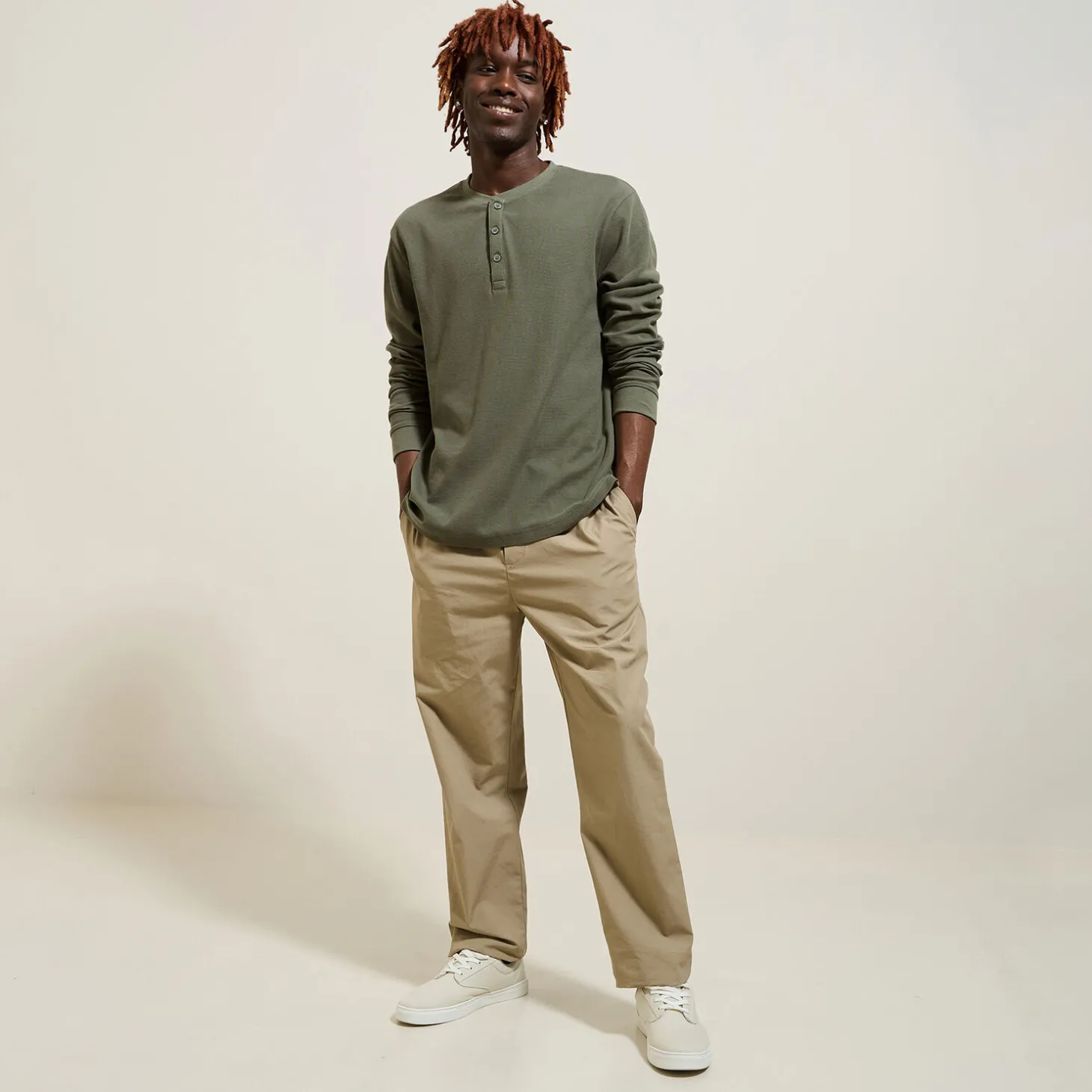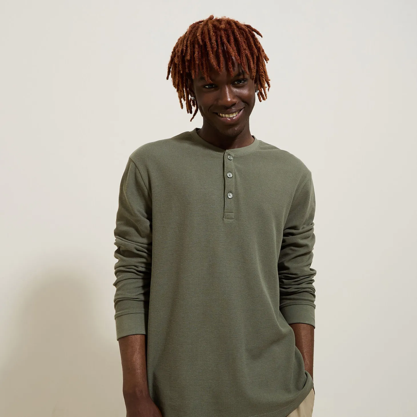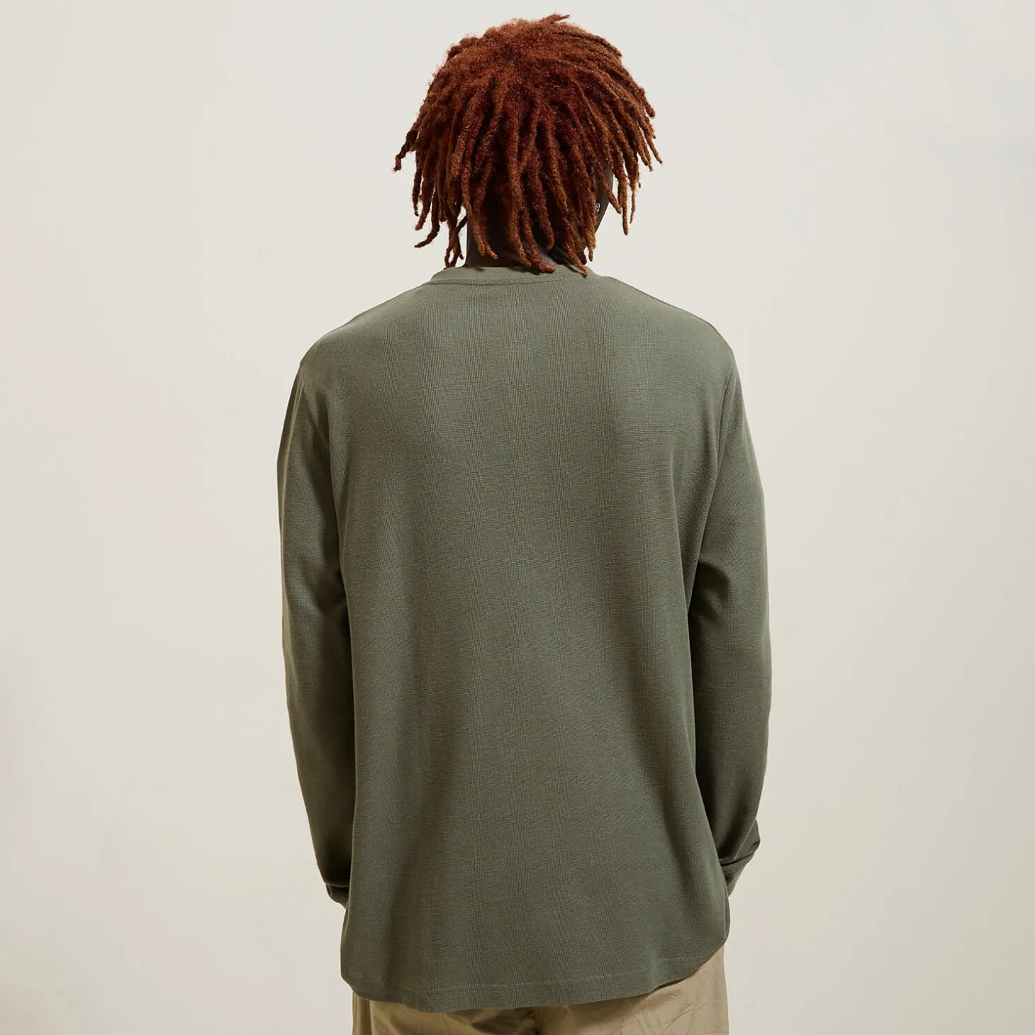 Dit t-shirt met lange mouwen van wafelstof is een echte basic in elke mannenkledingkast, en past bij elke stijl. Het materiaal is van biokatoen.