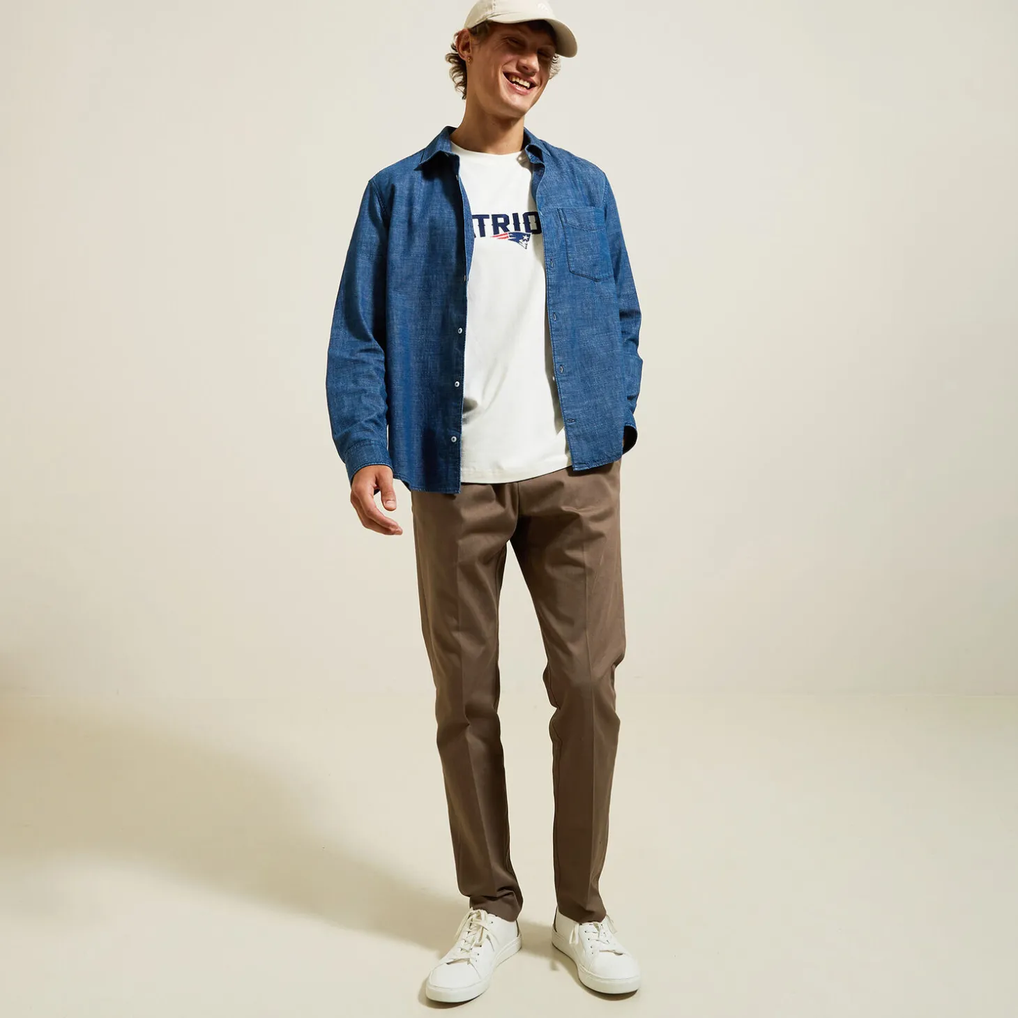 Toon je steun voor de Patriots met dit T-shirt onder NFL-licentie met hun afbeelding. Door de rechte snit en het geborduurd logo is dit T-shirt een topstuk in je garderobe.