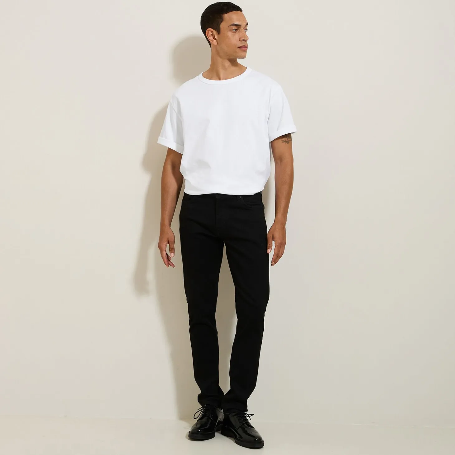 - Slim snit die strak op het lichaam valt en aangespannen is aan de enkels