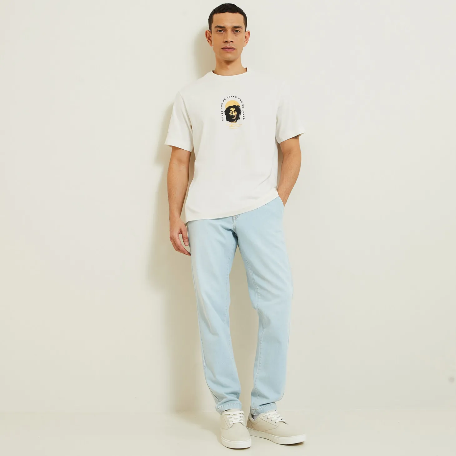 Dit T-shirt met Bob Marley-print, ideaal voor de komst van de mooie dagen, geeft je outfit een casual touch. Hij past op een jeans, een chino of zelfs een bermuda, zoals je maar wil!