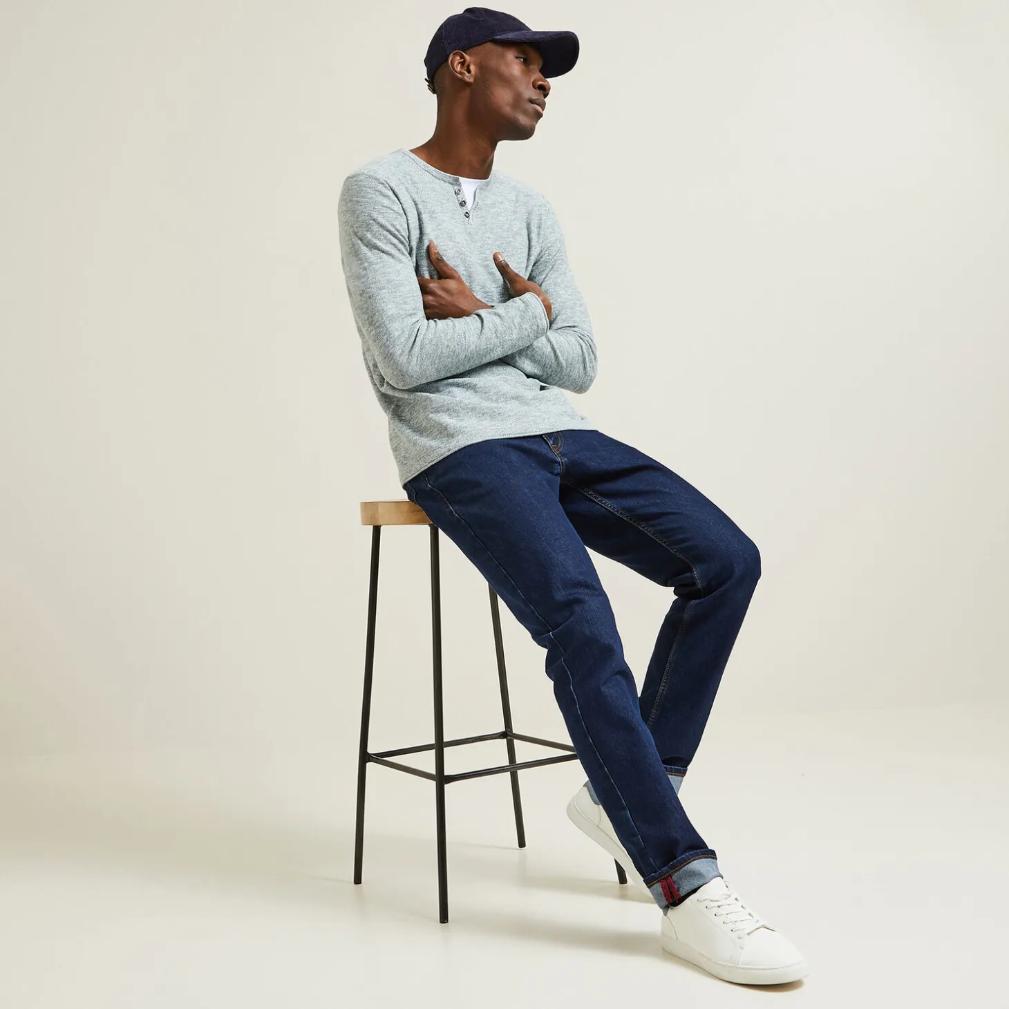 Deze trui met knooplijst geeft je outfit een zeer bijzondere uitstraling. De jersey voering aan de hals biedt een classy en relaxte stijl.