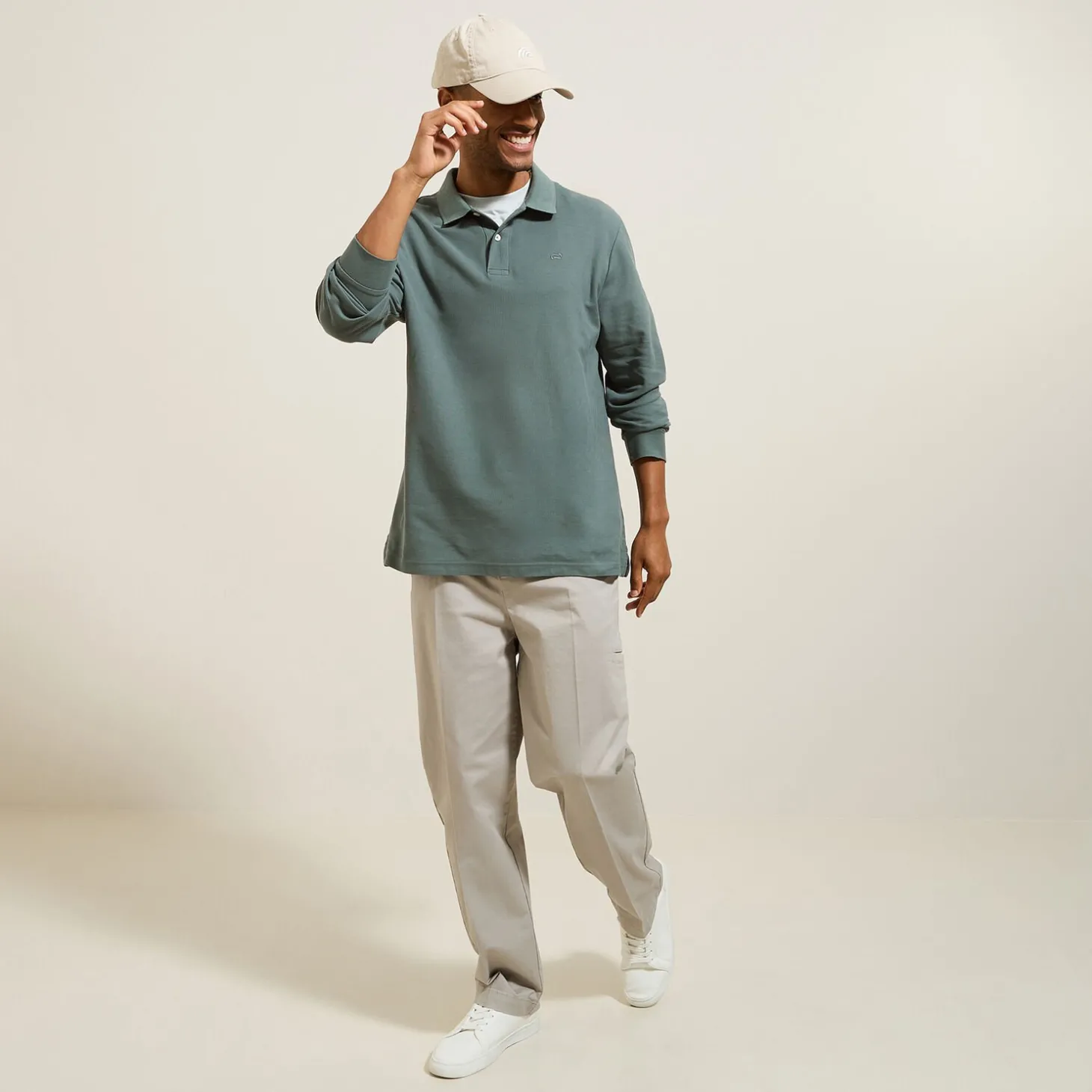 Met zijn subtiele geborduurde logo op de borst, is deze effen piqué polo met lange mouwen een must-have in de herengarderobe.