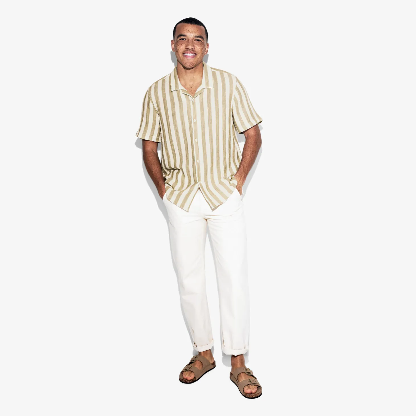 Dit gestreepte overhemd van katoengaas, een nieuwe populaire stof, mag niet ontbreken in de herengarderobe. Wees stijlvol onder alle omstandigheden.