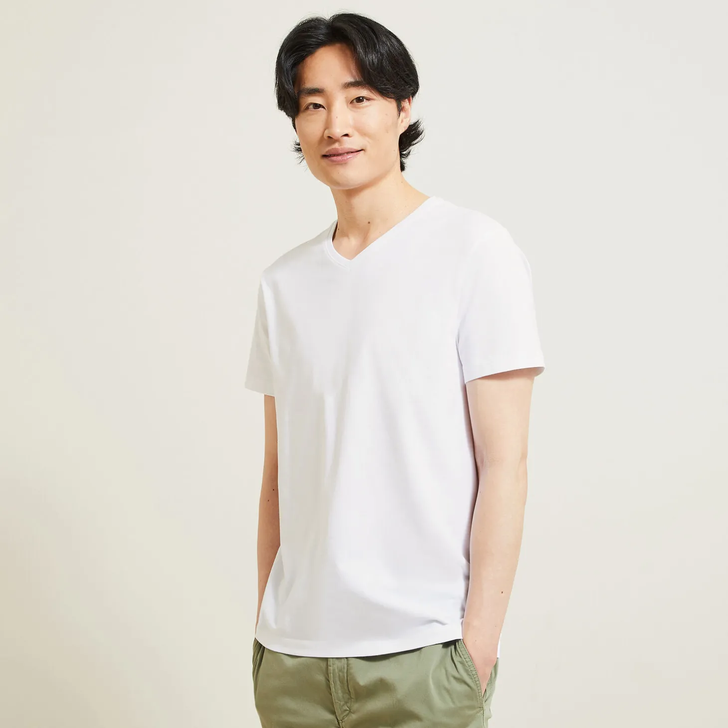 - V-hals, in katoen en elastaan