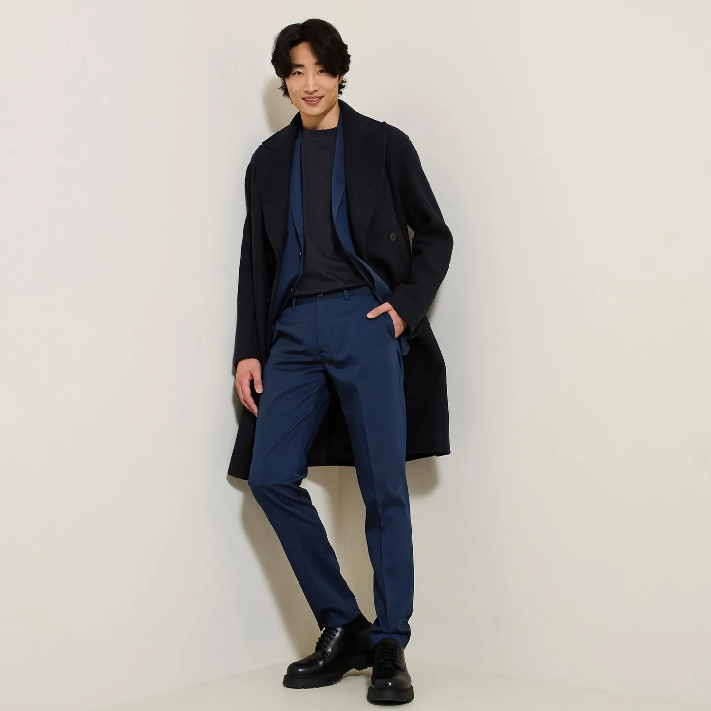 Deze lange wollen jas met dubbele knoopsluiting is ideaal om stijlvol de winter in te gaan. De reverskraag en rechte snit geven u een elegante en tijdloze allure.