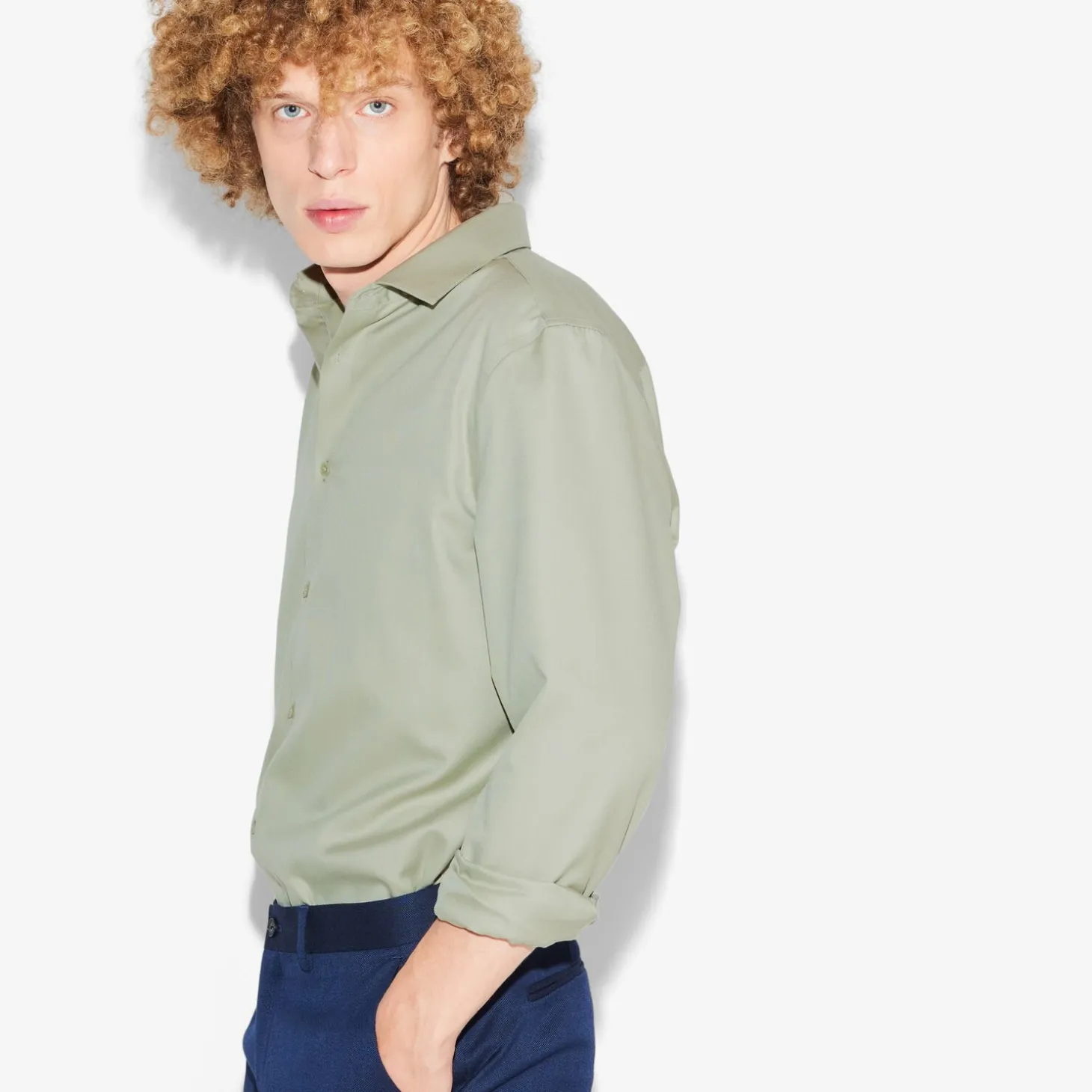 Om je hemden na het wassen niet te hoeven strijken, hebben we een stof ontwikkeld voorzien van een kreukvrije behandeling die strijken overbodig maakt.Alexis meet 1m90 en draagt maat L.