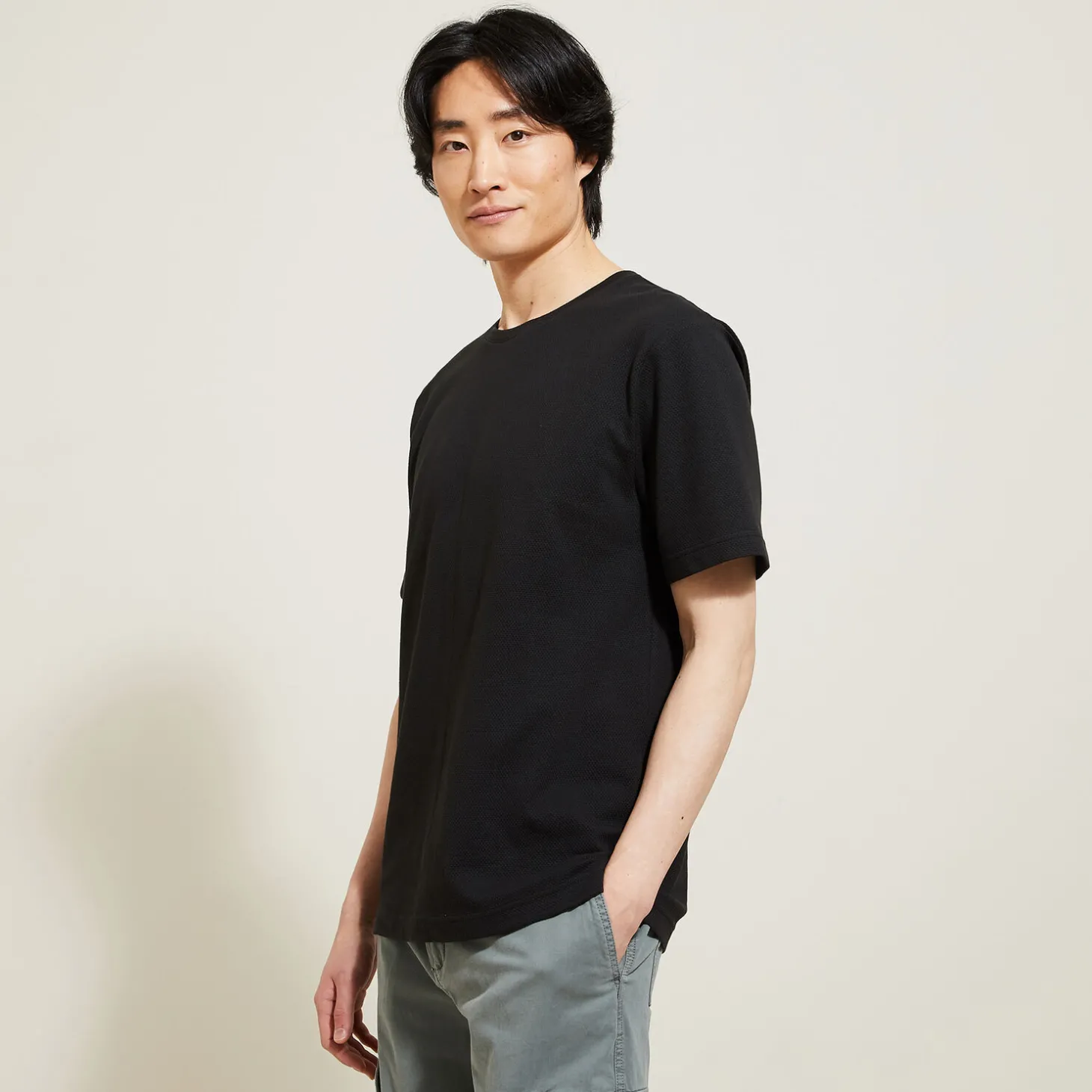 Dit T-shirt in een katoenen reliëfstof met elastaan mag in geen enkele dressing ontbreken en matcht met alles.