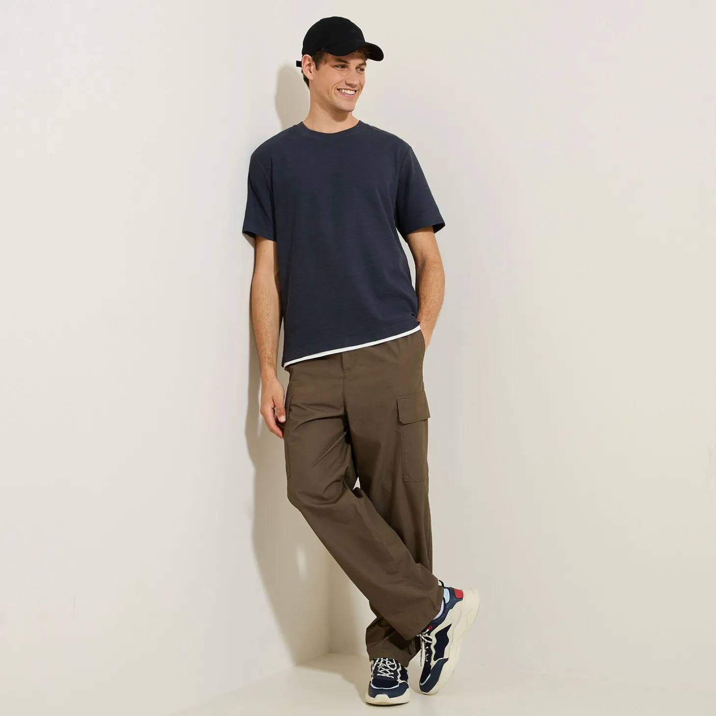 Dit zachte, stevige en stijlvolle t-shirt in reliëfstof heeft alles wat nodig is voor een relaxte look!