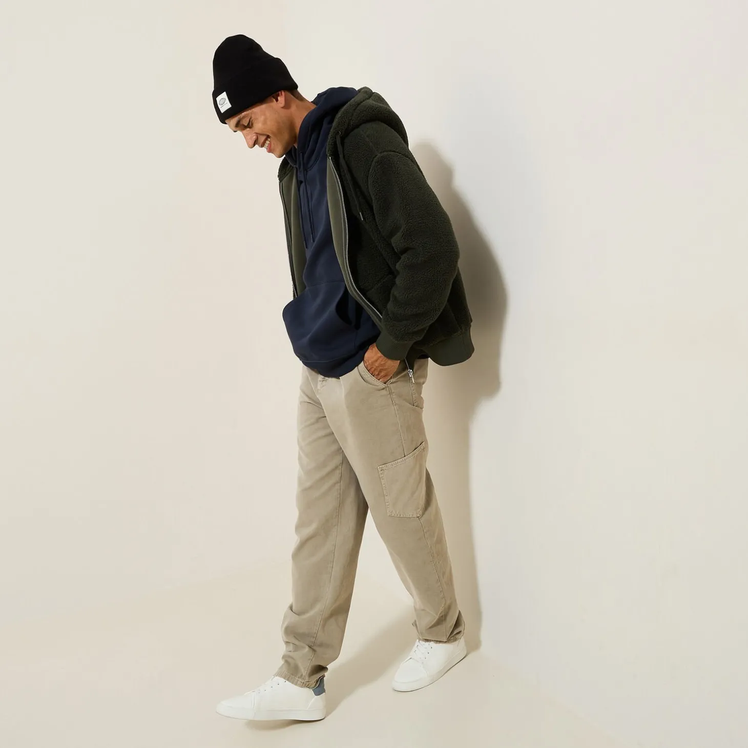 Deze brede broek in katoen is een must have in een mannengarderobe. Met zijn wijde snit en vele zakken, waaronder een cargozijzak, biedt deze broek een relaxte en praktische look.