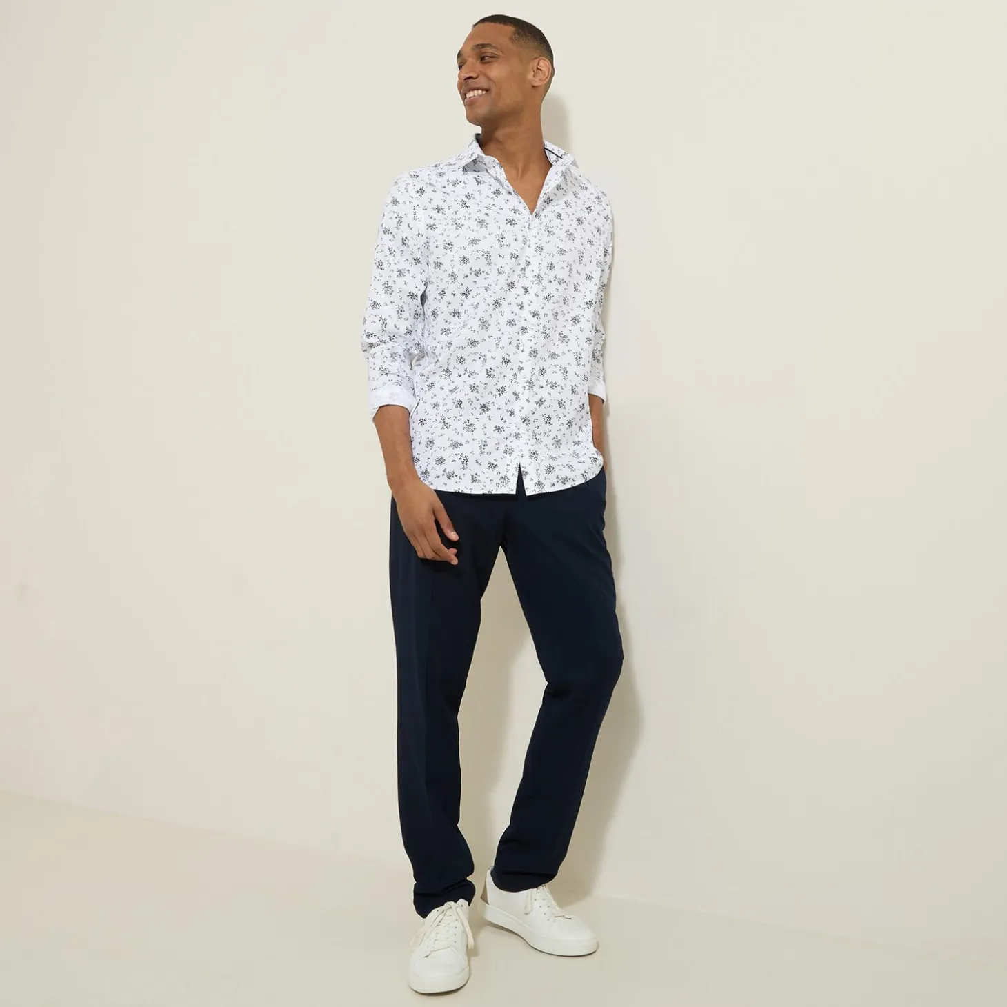 Geef een florale twist aan je garderobe met dit slim hemd met bloemenprint. Dit hemd, uitgevoerd in katoen, biedt een geklede en trendy look