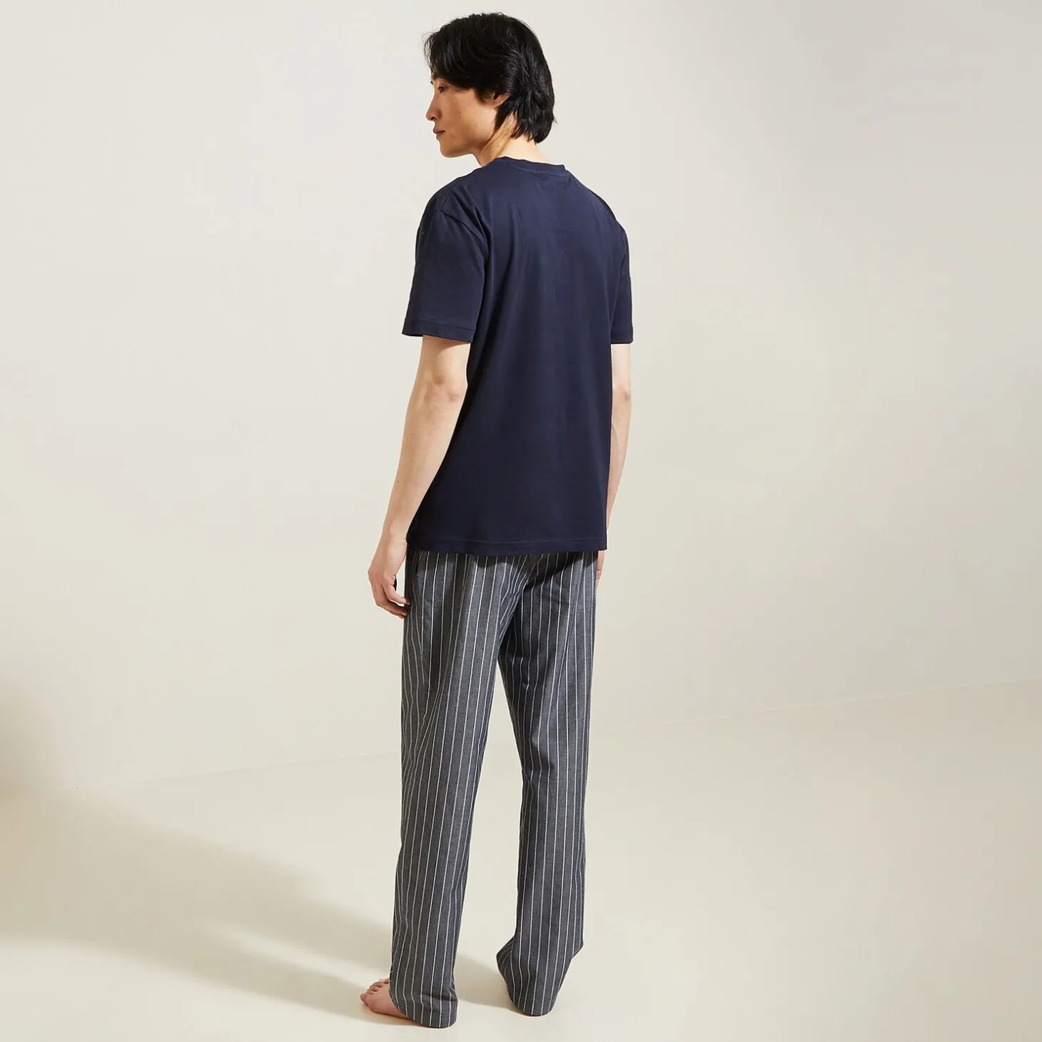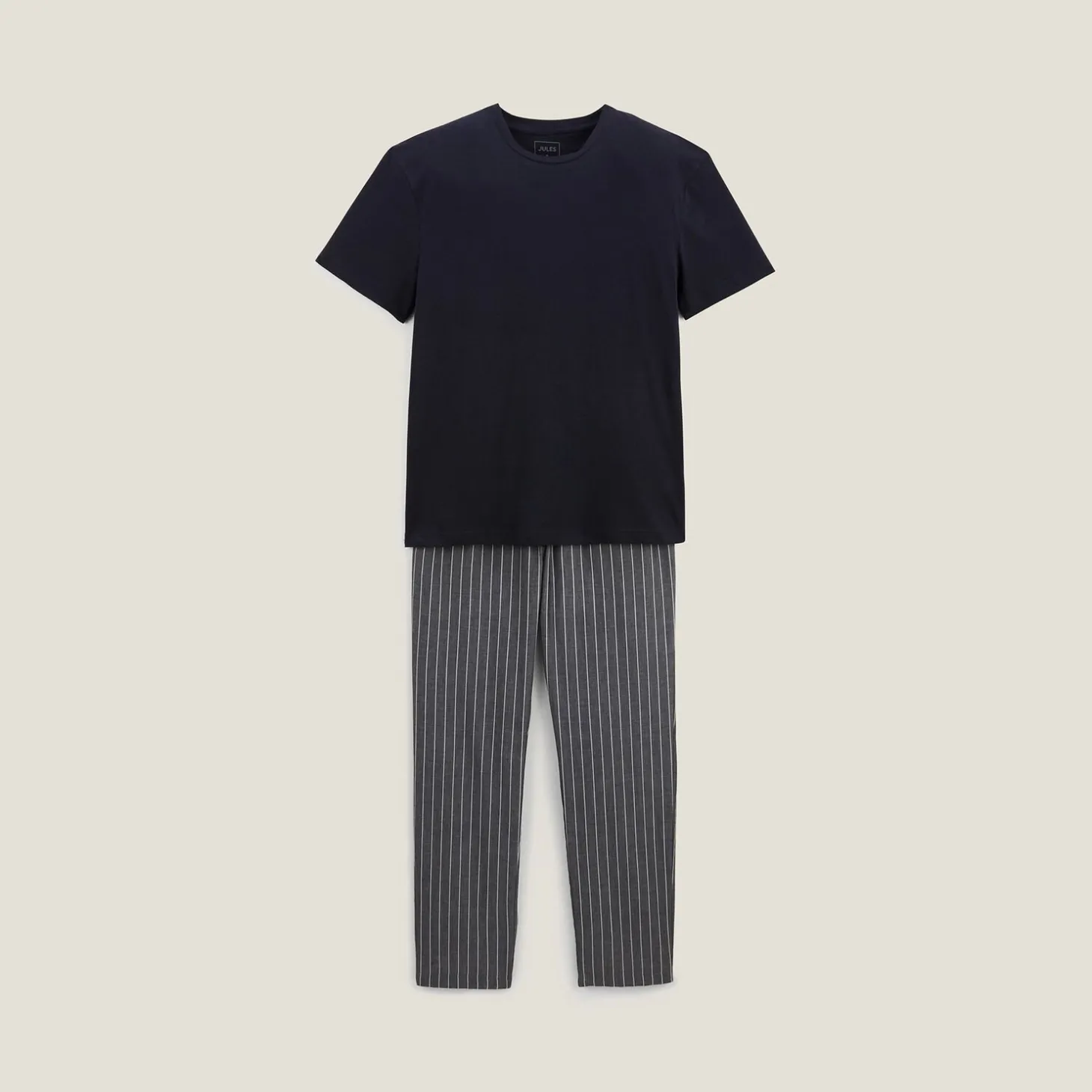 Deze pyjama bestaat uit een T-shirt met korte mouwen en uit een broek in streepjesstof. Deze set zit goed in alle omstandigheden.