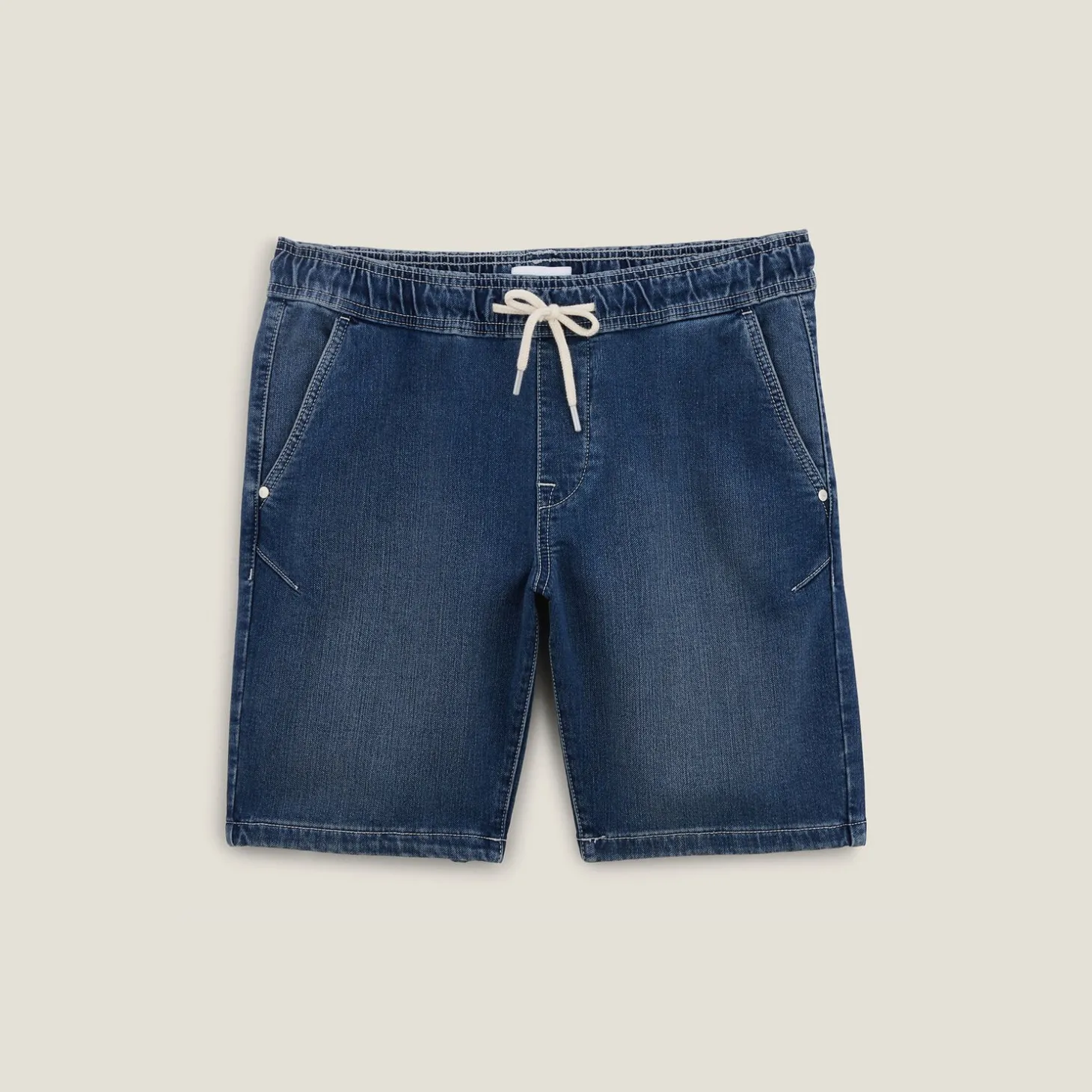 Kies voor een relaxte en duurzame look met deze denim bermuda met tricot effect!
