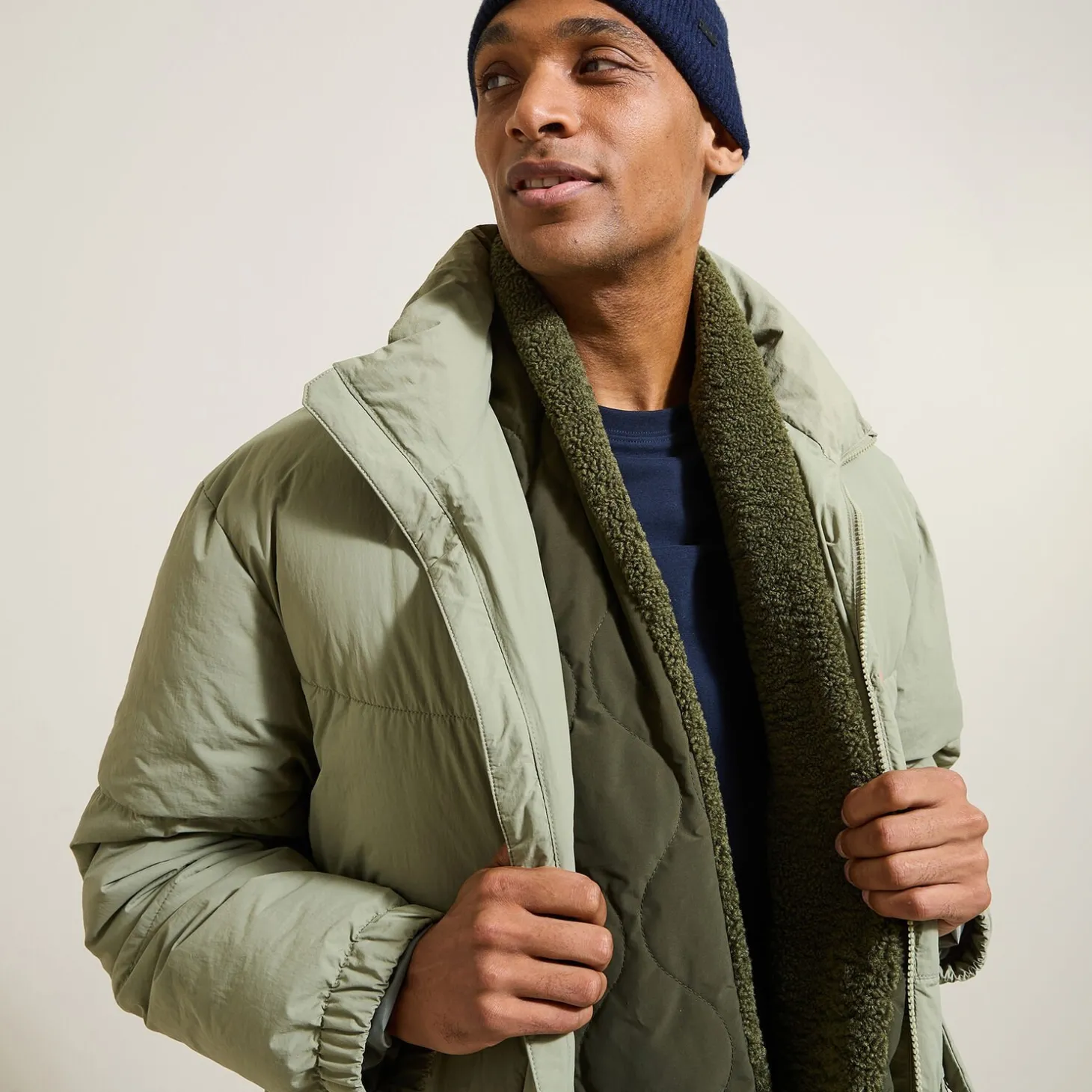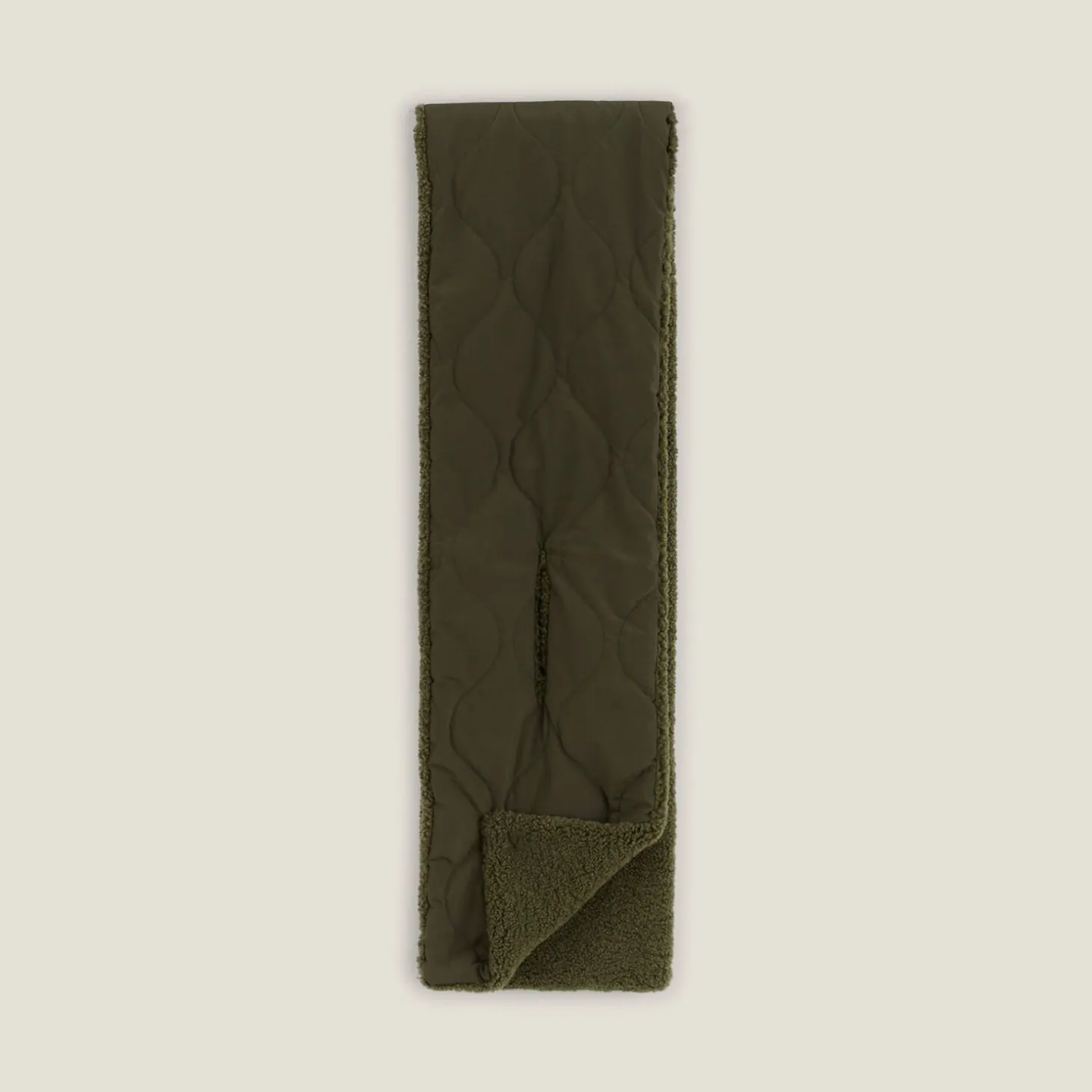 De gewatteerde sjaal: het ideale accessoire om stijlvol de kou in te gaan. Deze sjaal is lang, rechthoekig en gewatteerd, en heeft een zachte sherpa-zijde.