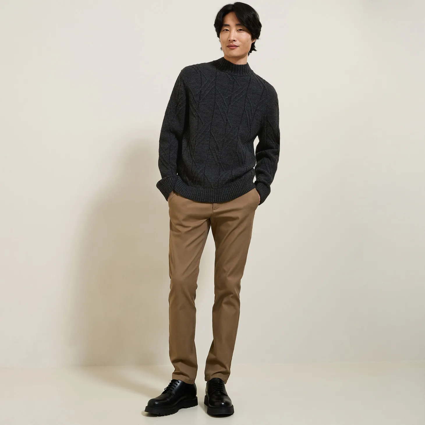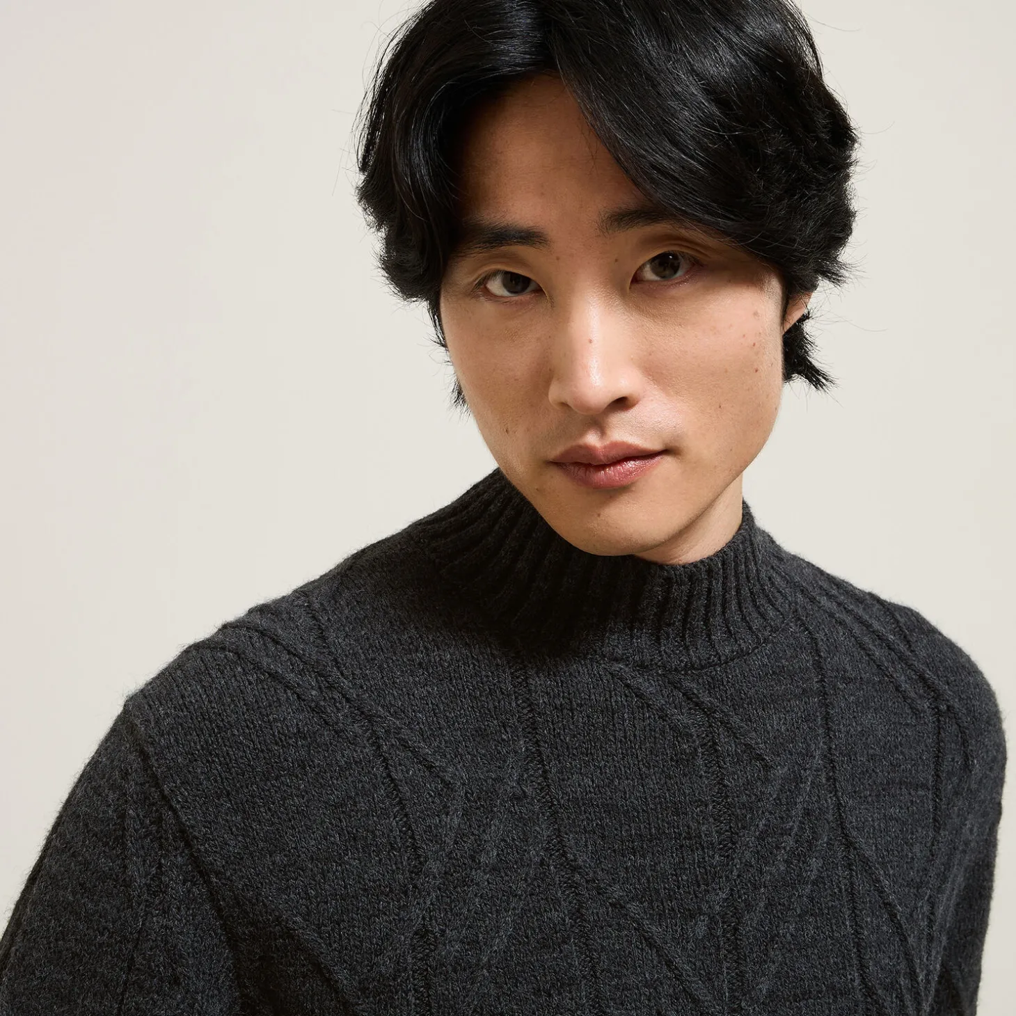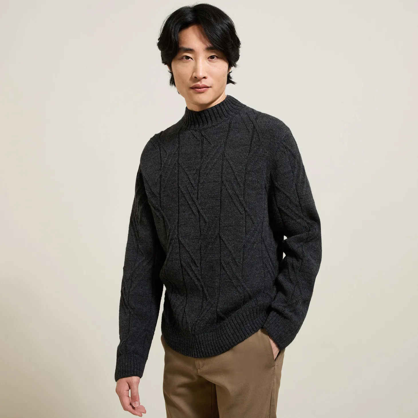 Ga voor een trendy, relaxte look met deze grafische kabeltrui voorzien van schoorsteenkraag.