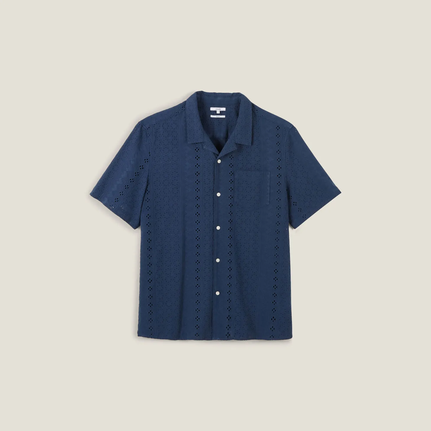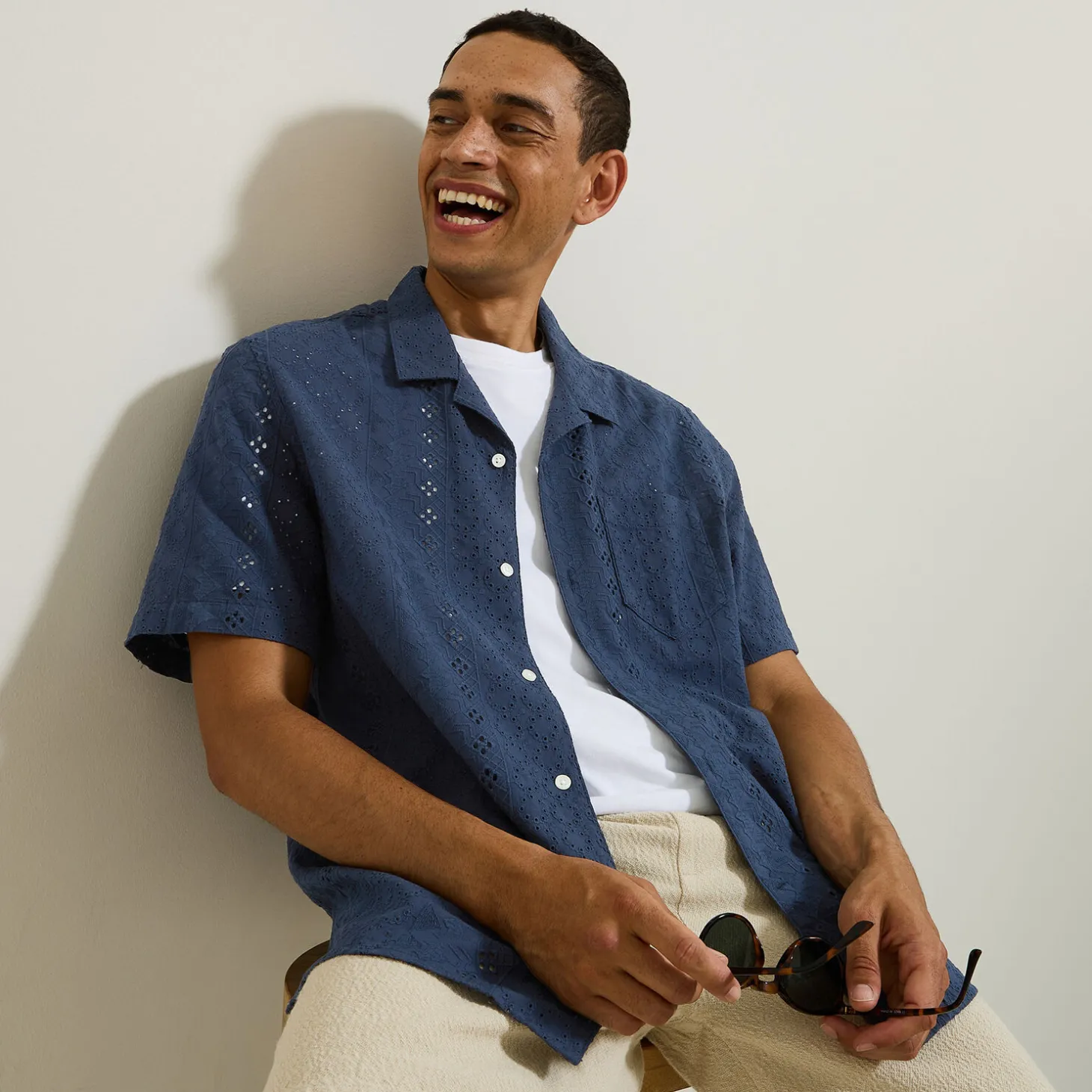 Dit hemdje met ajourborduursel is tegelijkertijd zacht, soepel en comfortabel, voor een relaxte look.