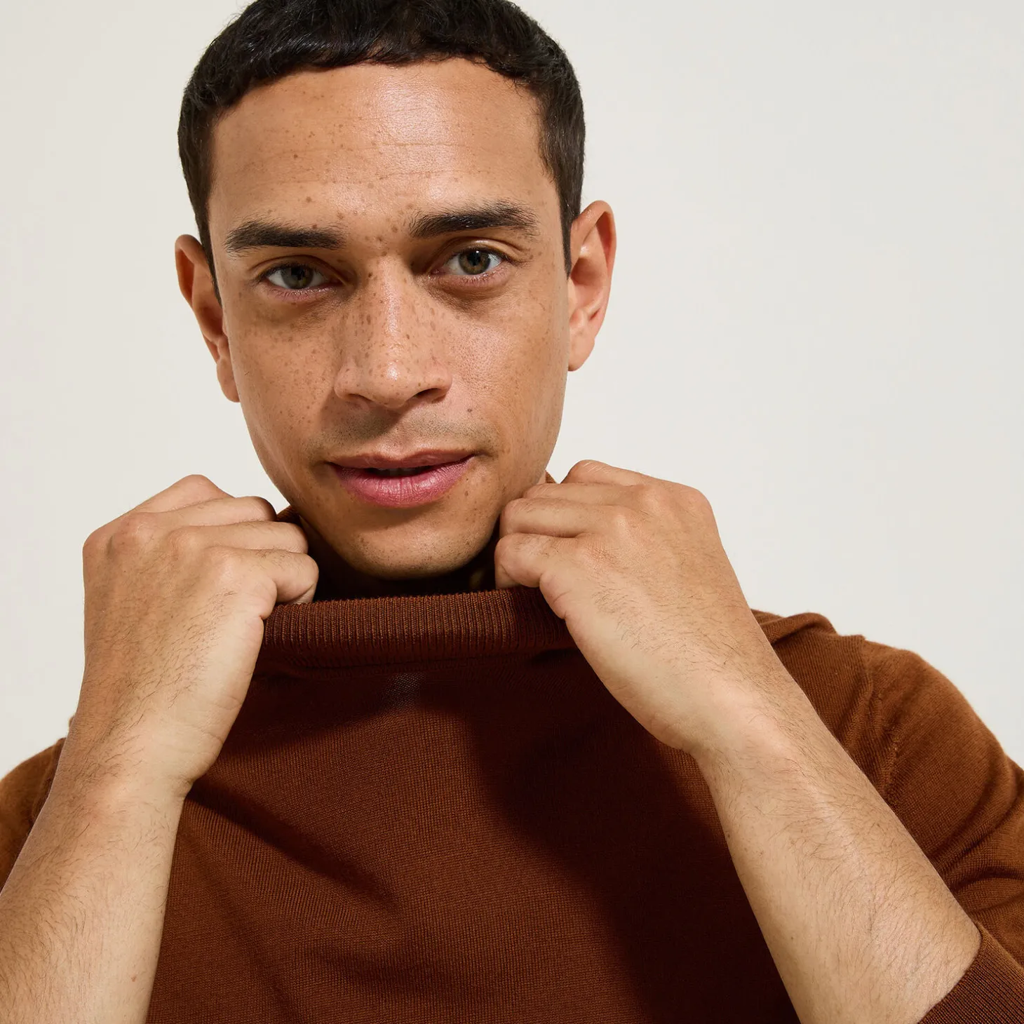 Met zijn rolkraag, een nauw aansluitende kraag die je deels naar omlaag rolt, is deze trui een must have van een mannengarderobe!