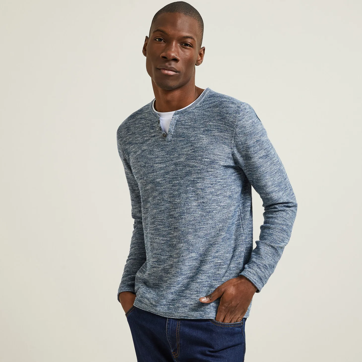 Deze trui met knooplijst geeft je outfit een zeer bijzondere uitstraling. De jersey voering aan de hals biedt een classy en relaxte stijl.