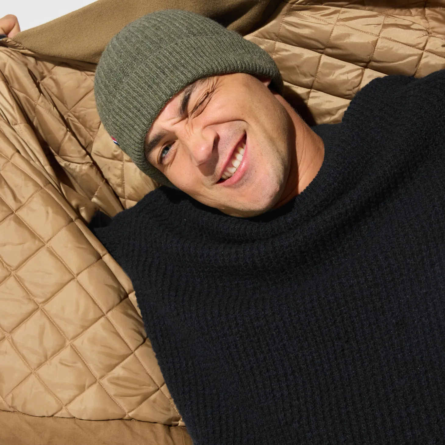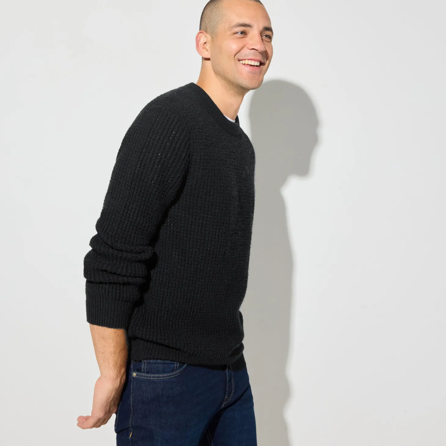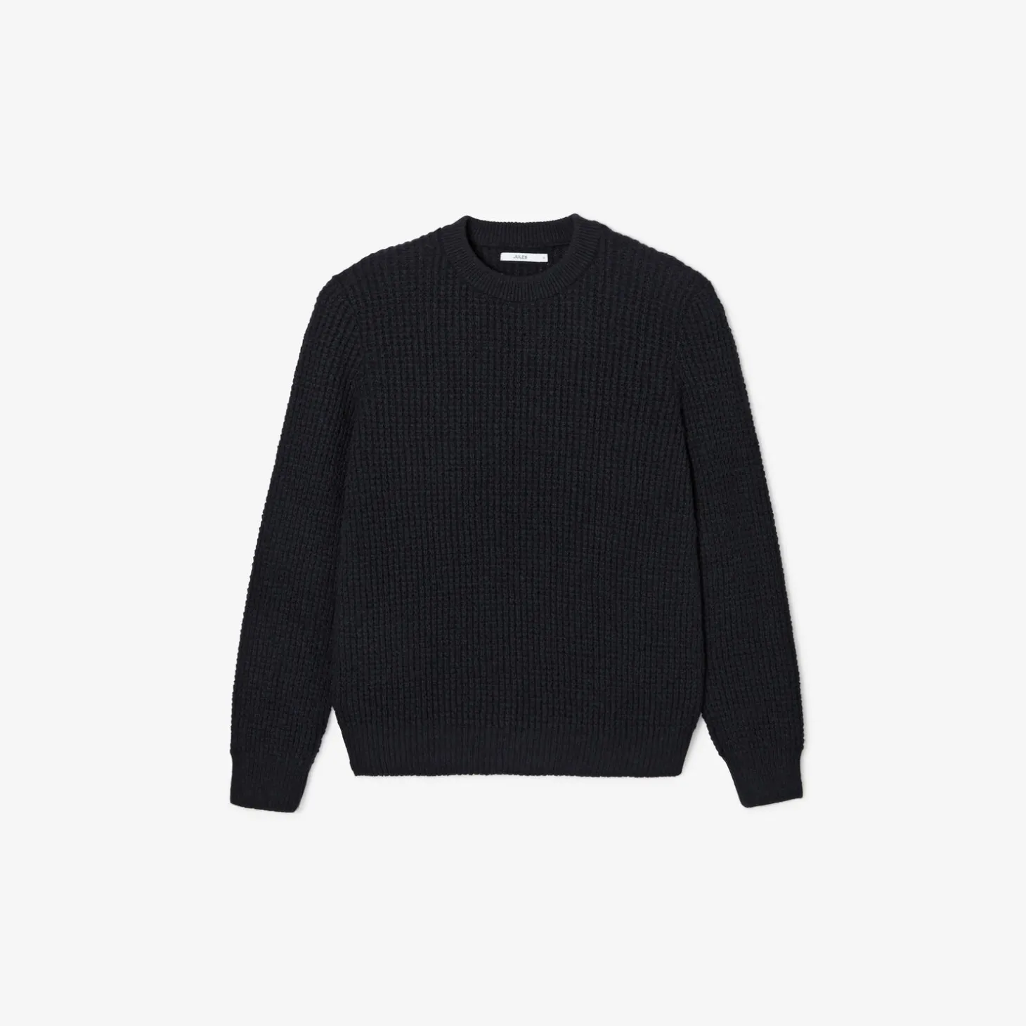 Deze trui met wafeltextuur past perfect bij een ruwe jeans voor een ontspannen look. Voor een meer geklede look kan je hem combineren met een chinobroek en derbies.
