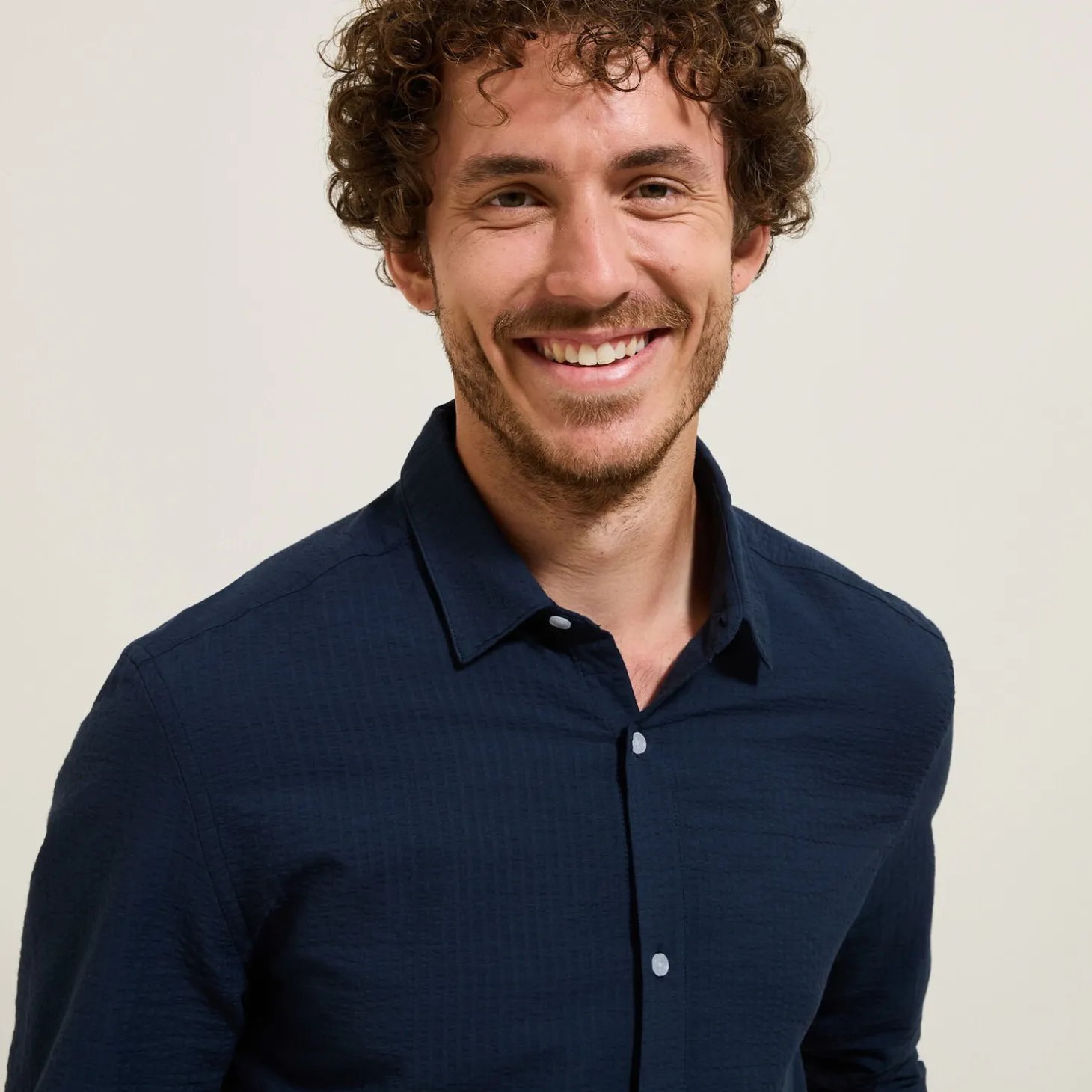 Val voor de relaxte, elegante stijl van dit gestreepte overhemd in seersucker katoen. Met de lange mouwen en knoopsluiting is hij perfect voor een zomerse look.