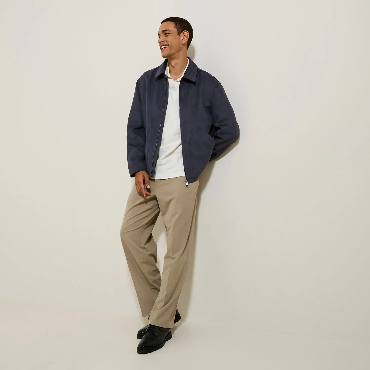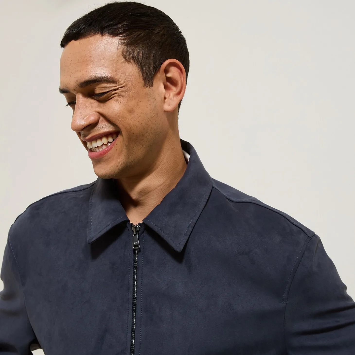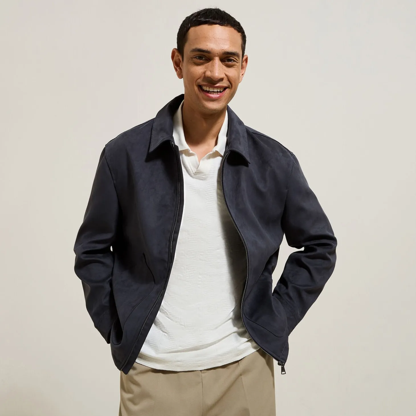 Dit jack met fluwelen aspect en hemdskraag geeft een vleugje raffinement aan uw look