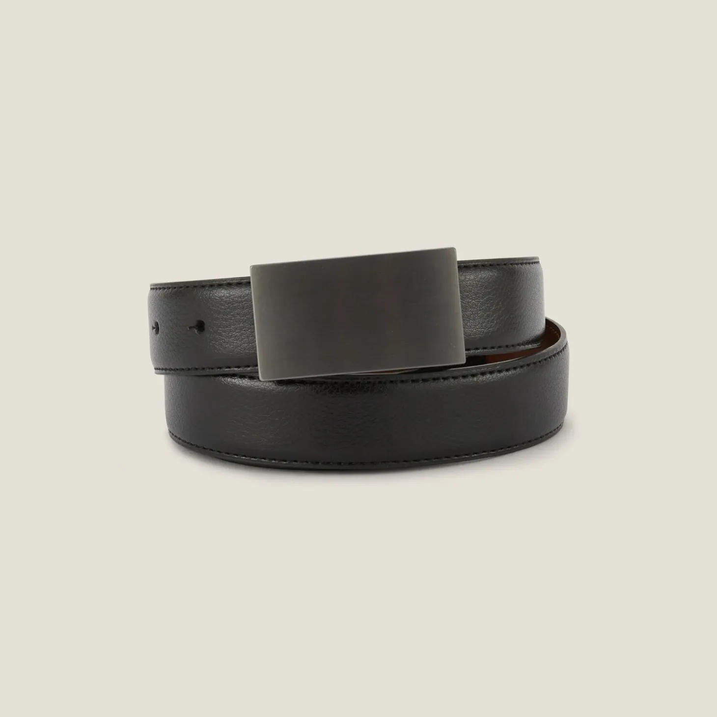 De omkeerbare riem met plaatgesp: het 2 in 1 accessoire dat uw stijl een boost geeft. Is voorzien van een rechthoekige gesp, voor een moderne look.