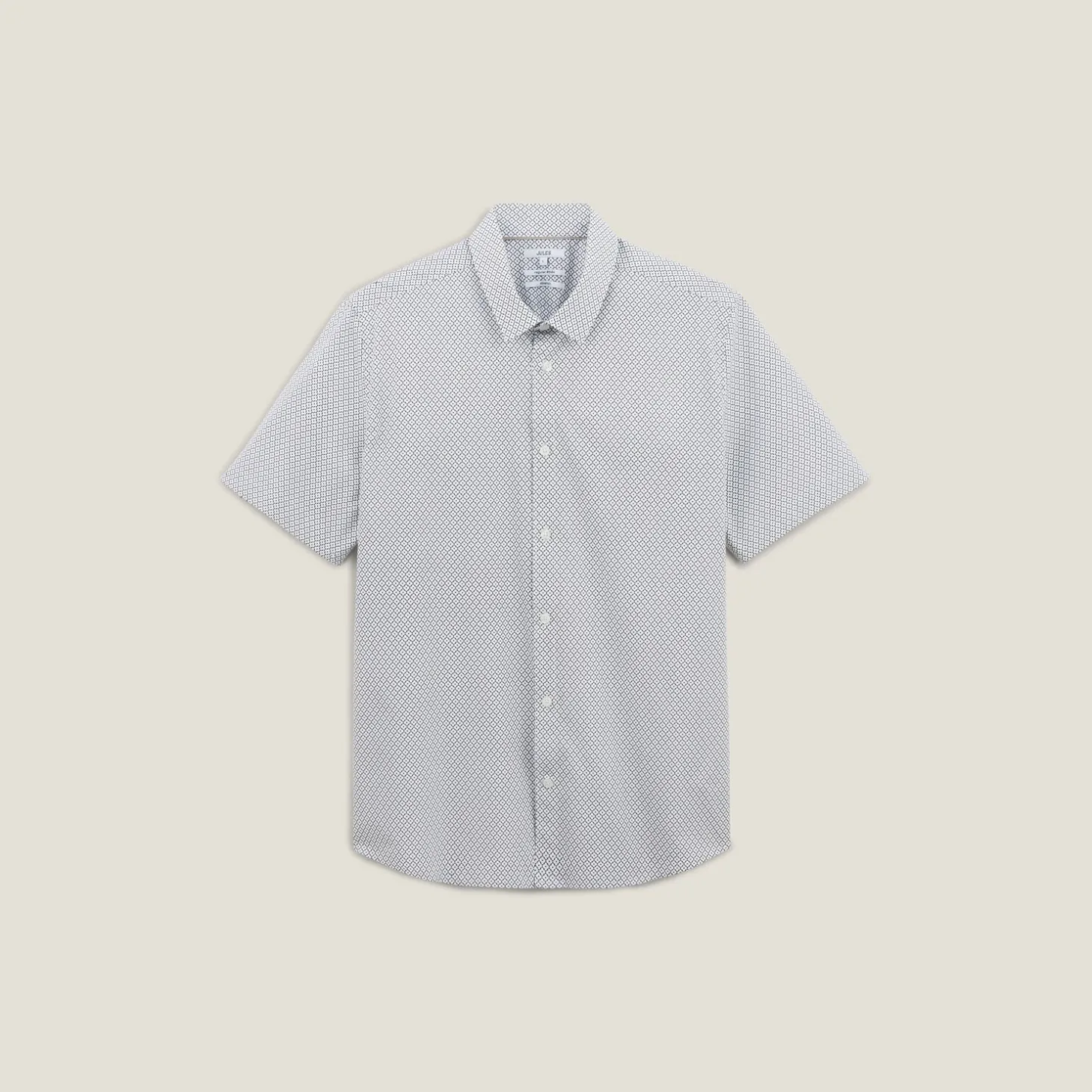 Dit katoenen hemdje met geometrische micromotieven, dat zich perfect aan je silhouet aanpast, geeft je outfit een classy look, in alle omstandigheden. Bevat elastaan. De vezels zorgen voor elasticiteit, comfort en bewegingsvrijheid.