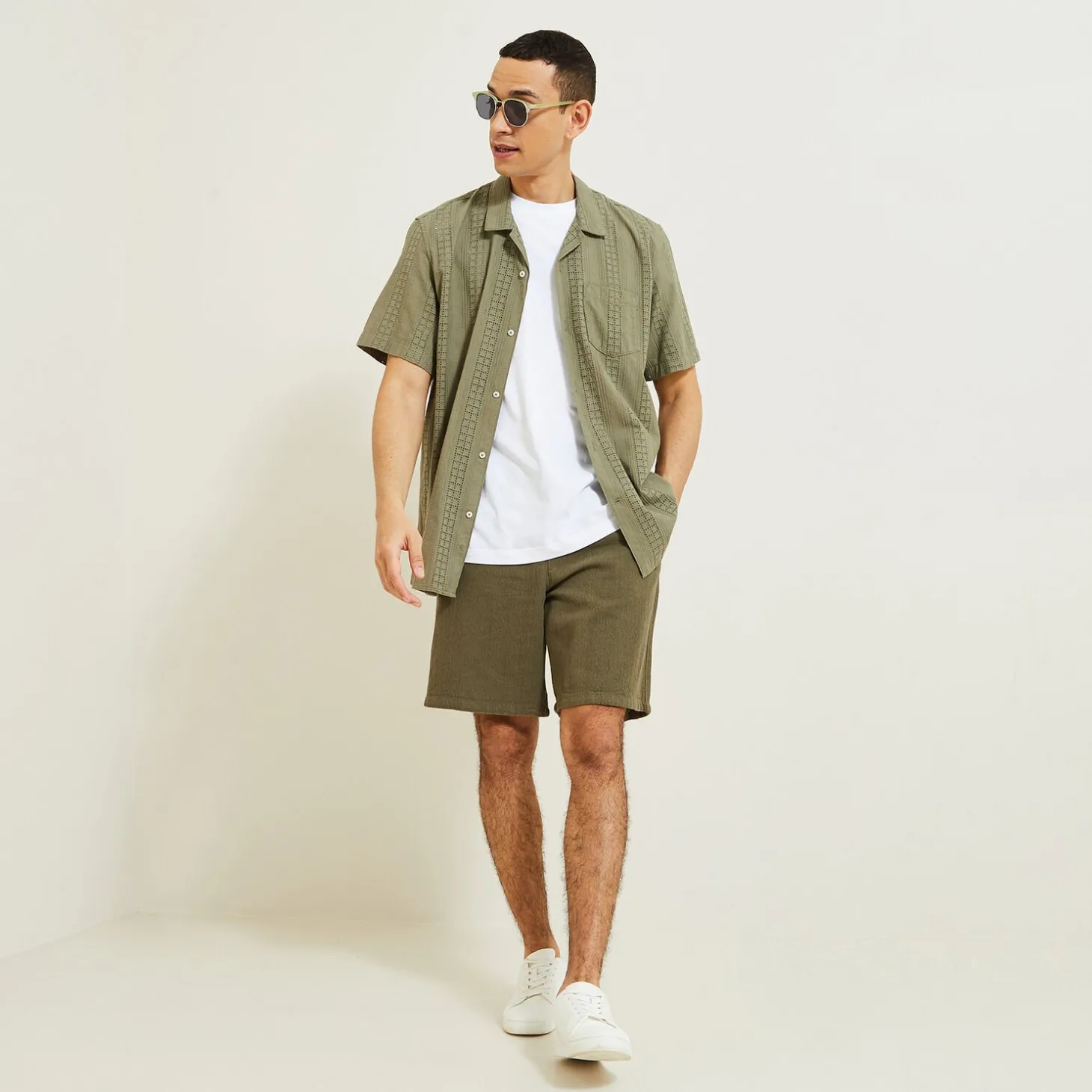 Deze bermuda in een lichte en goed zittende textuurstof is een topper van de zomerdressing.