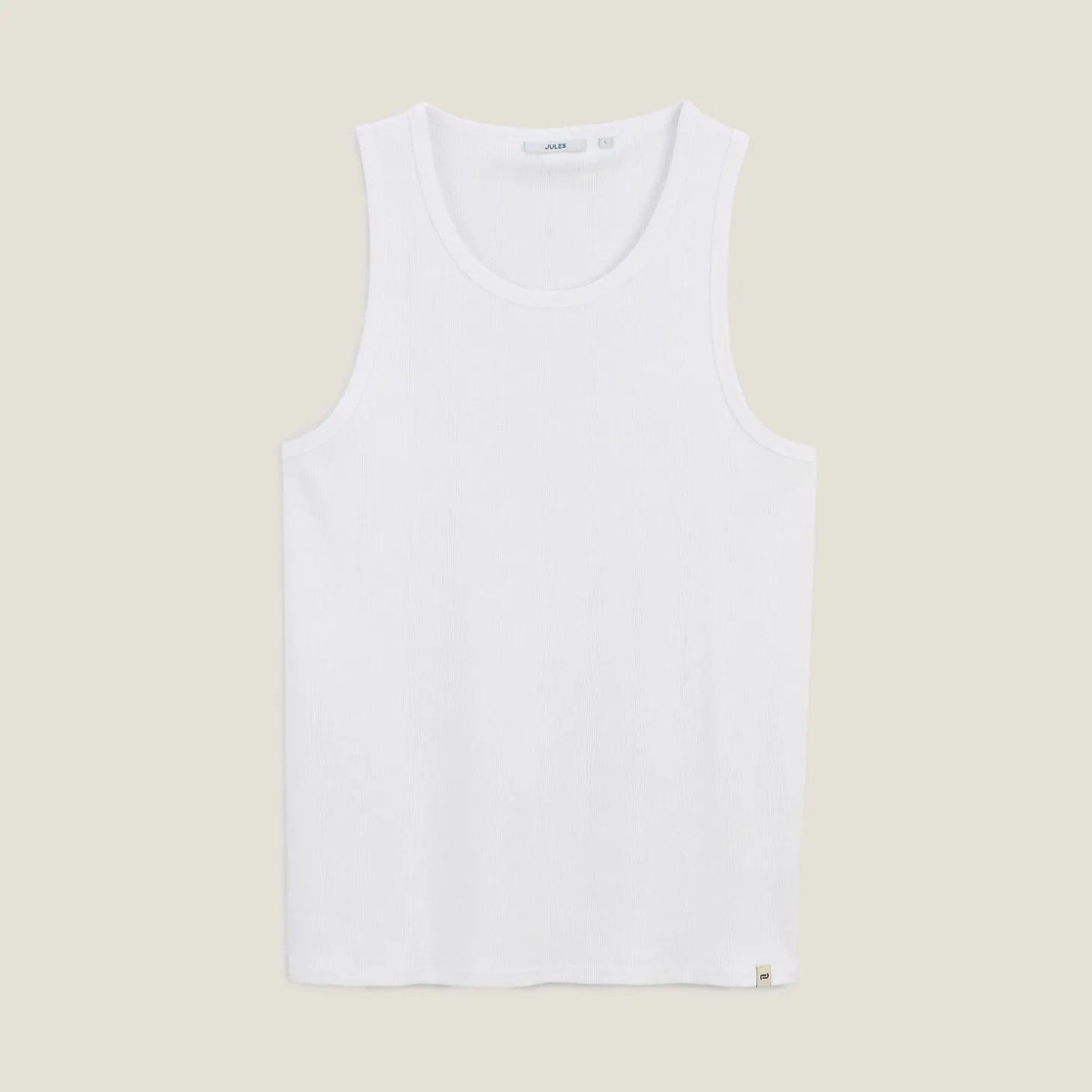 Het mouwloos hemdje is een must have voor de zomer! Zacht en licht, dit effen mouwloos hemdje in 2×2 ribboord kan je dragen met een korte broek of een bermuda.