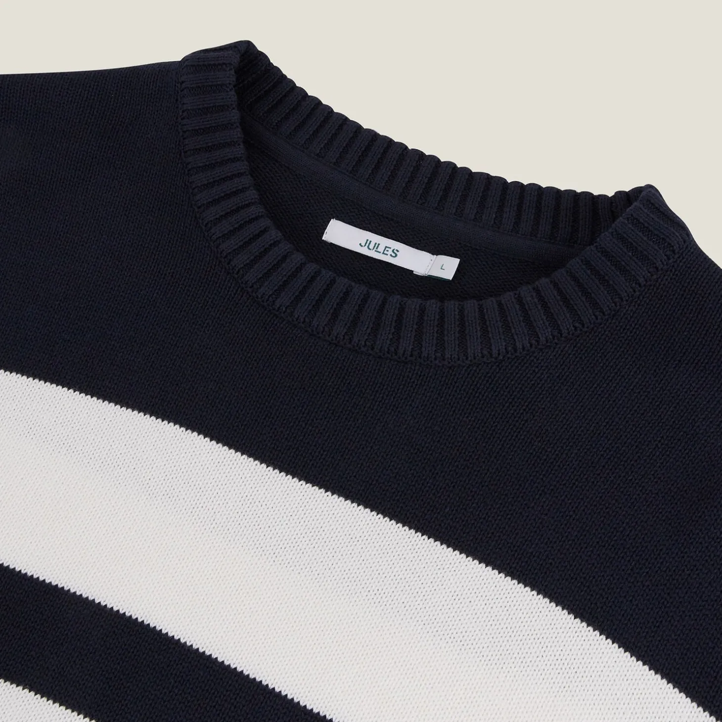 Deze trui met zijn ronde hals en moderne strepen maakt uw sportieve outfit helemaal af.