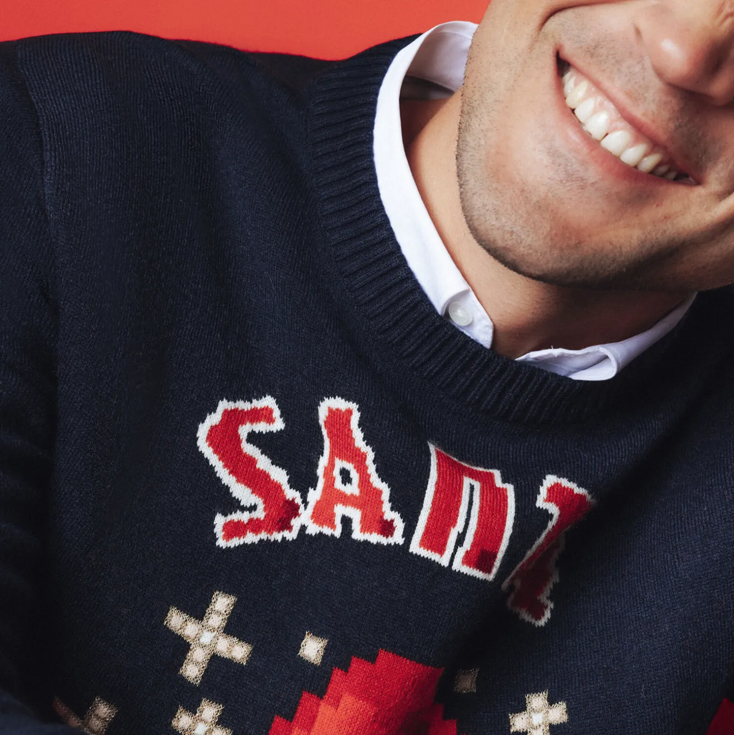 - Draag deze trui met een ruwe jeans en witte sneakers voor een relaxte en feestelijke look.