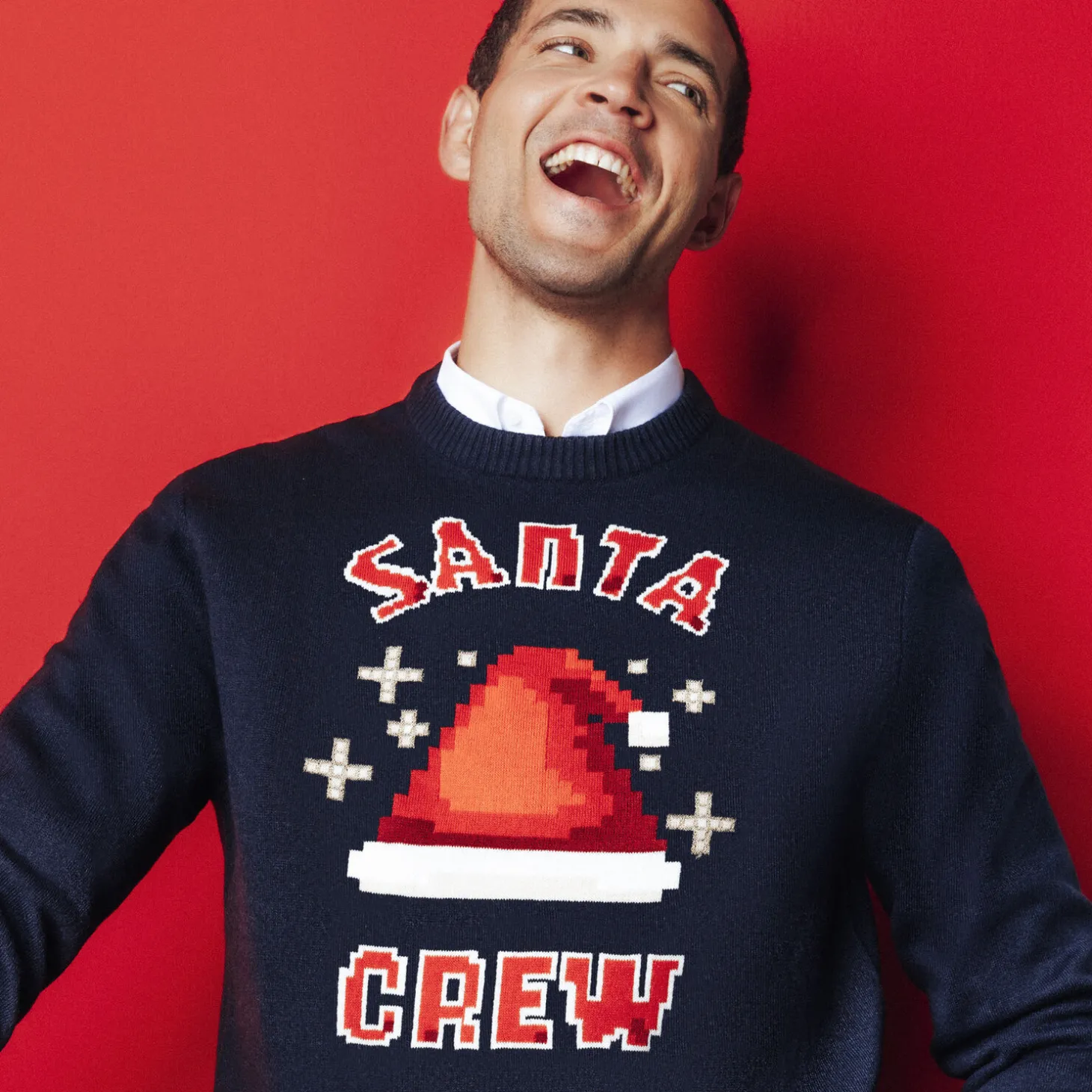Deze kersttrui “Santa Crew” met ronde hals, verfraaid met een kerstmotief, brengt je in een feeststemming. Verkrijgbaar in een versie voor kinderen, dit is een geweldig cadeau-idee voor een vader-zoon-duo!